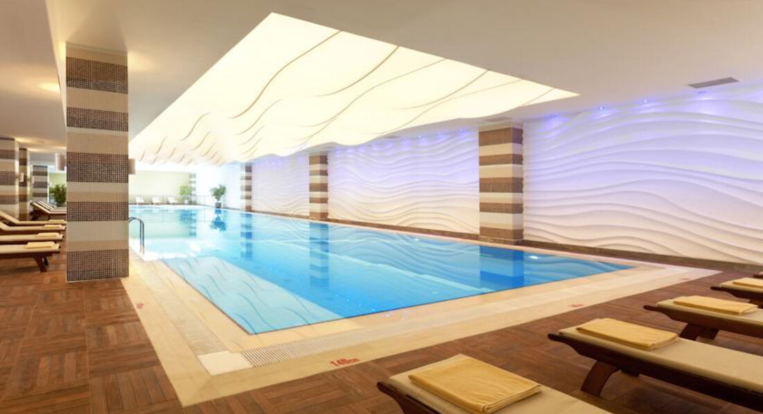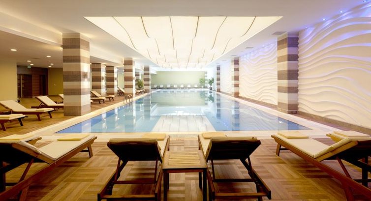 Бассейны. Всего на территории 8 бассейнов : 1 большой (основной) где проходят акваэробика, водное поло и др. мокрые развлечения, рядом бассейн для малявок (глубина 45 см), бассейн с водными горками, бассейн у вилл, большой релакс бассейн у основного здания плюс еще один бассейн для малявок, крытый бассейн плюс еще один для маленьких гостей . У каждого бассейна с 10 до 18 обязательно присутствуют спасатели, и надо отдать должное, исправно выполняют свою работу. В октябре всю нагрузку на себя принимает крытый бассейн в СПА –центре, там проводят акваэробику и в условиях турецкой непогоды СПА-центр становится центром притяжения для гостей отеля.