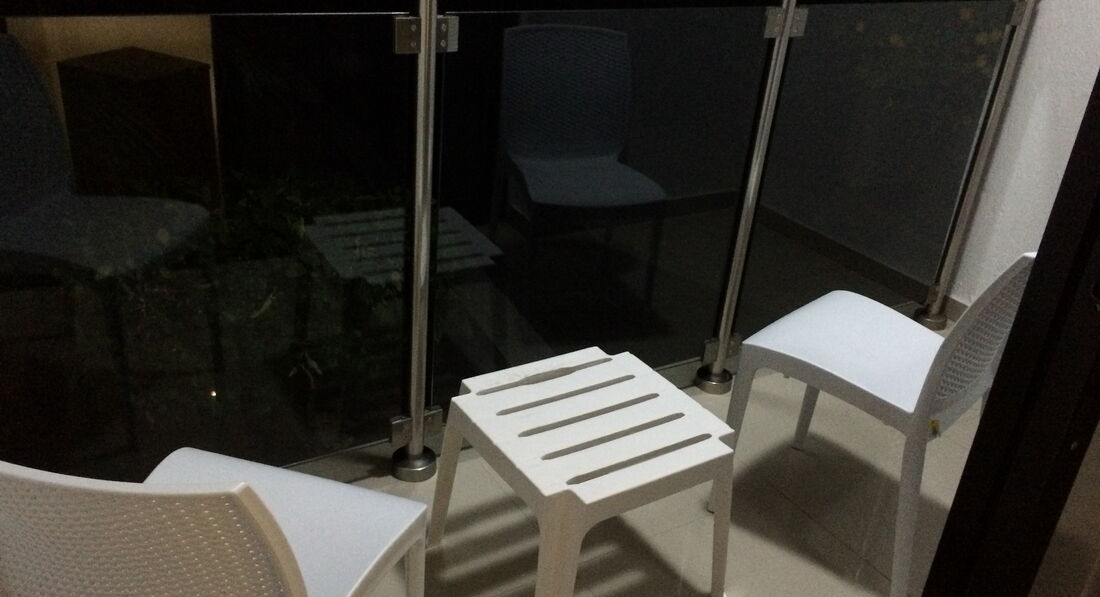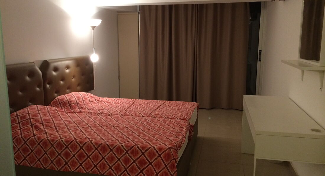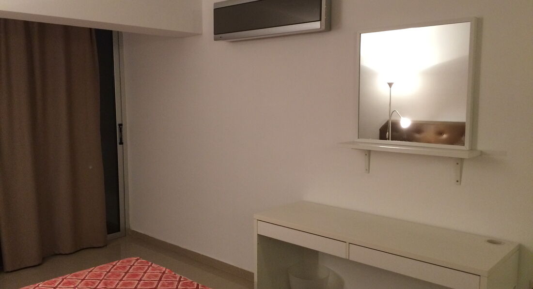 отзывы пишу крайне редко, но начитавшись положительных отзывов об этом отеле не ожидал увидеть ХОСТЕЛ по приезду. жил я конечно же один в 2-х комнатном номере на 4-х человек, но номер совсем не похож на те что были в отзывах других людей, все ужасы (особенно в душе-туалете) фотать не стал, просто общий вид. номер менять отказались , даже за деньги. в отеле были и приличнее номера, но нашему заезду достались именно такие. обшарпано и грязно. ревизорро Летучая была бы в экстазе))). обратите внимание, что кондиционер на стене есть, НО включается он в розетку проводом, котрый до этой розетки просто не дотягивается 15см!!! на рецепшн наверное дают этот удлинитель, возможно в сезон за доплату, как кто-то писал. я был уже в конце сентября, мне кондиционер был не нужен. еще один нюанс, который тревожил это хлипкие двери с замком защелкой, которые можно открыть столовым ножом и отсутствие охраны в отеле, заходи с улицы-бери что хочешь.