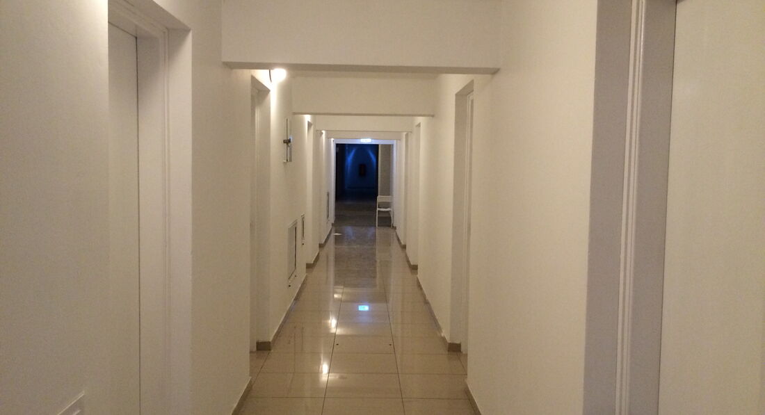 Пришло время и мы пошли заселяться.. Больничные коридоры, стены грязные. Везде ступеньки, с 20кг сумками девушкам придется не сладко..