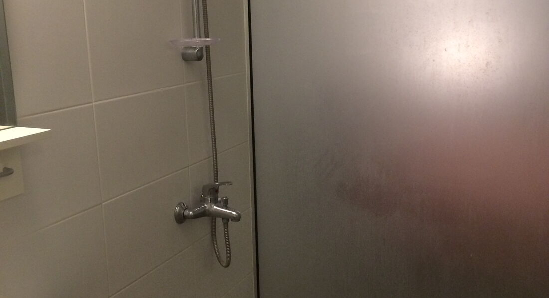 Неисправная сантехника. Душевая лейка вся протекает, на штанге лейка не держится, при выключенной воде кран течет. Стены в плесени. Ни одной полочки для душевых принадлежностей, крючки для полотенец-муляж, как дотронешься-сразу все валится.