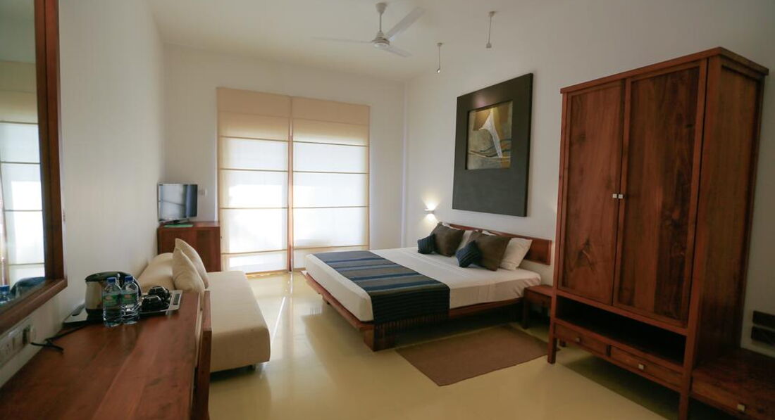 Шри-Ланку посетили впервые, до этого был отдых только на европейских курортах. Контраст чувствуется сразу, но на то она и экзотика. Для Шри-Ланки отель очень даже хороший, на берегу океана, чистый длинный пляж. Много зелени, а следовательно днем есть тень, чтобы спрятаться от палящего солнца. Для любителей развлечений может не понравится расположение, так как до города нужно добираться на туктуке. В 15 мин. ходьбы есть черепашья ферма, по вечерам можно ходить туда и выпускать маленьких черепашек в океан. Чистота в номере желает лучшего, занавеска на окне очень грязная, во всех номерах. Банные полотенца меняют каждый день, но бывает такое,что забали уторм, а чистые принесли вечером, когда уже покупался. Нет тапочек, халатов. Зато каждый день приносят 2 по 0,5 бутылки воды. Также в номере нет весов, но их можно попросить на рецепции. Питание своеобразное, хоть и европейское, но вкус местных приправ присутствует. Выбор блюд не большой. Дресскода на ужин нет. Есть платный ресторан на пляже. Кормят морепродуктами, заказывали ужин. Очень вкусно и сытно. Ужин на двоих их трех блюд, бутылки вина, десерта и кофе вышел около 100$. Персонал очень приветлив, все знают английский язык. Если вы планируете посетить Шри-Ланку, то советую брать экскурсионный тур. Так как это не пляжный отдых, страну нужно смотреть. Лучше брать 2-3 дня экскурсий вначале тура, получится две ночи в других отелях, а потом вы уже приезжаете в основной отель. Это удобнее, потому что отель находится на побережье, а основные достопримечательности в глубине острова. Например до Сигирии ехать в одну сторону около 6 часов, по километражу это совсем не много, но движение на дорогах очень напряженное, поэтому и получается долго. А если вы возьмете экскурсионный тур, то все переезды сократятся в два раза так точно и за один день вы будете успевать посетить достаточно много мест. Так что если хотите увидеть остров во всей красе, берите экскурсионный тур, выгоднее и по времени и по силам и по деньгам.