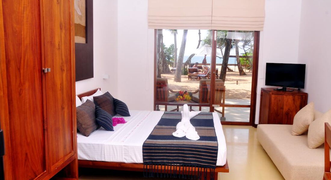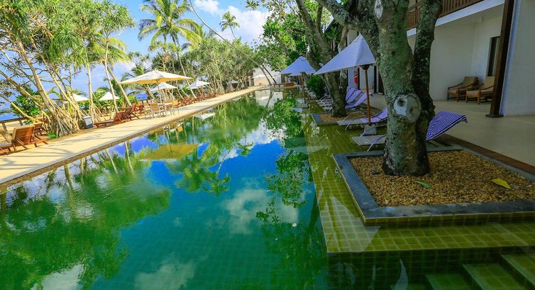Приехали в отель в 11,поселили сразу.Номер на 2 этаже,стандарт,но очень хороший и чистый.Питание брали Аl,довольны-обеды даже лучше чем ужины.Океан все время с волной,но это даже весело.Когда приехали было много европейцев,через неделю контингент стал на 90% Украина.На выходные приезжают местные большими семьями с детьми-очень шумные!Ездили по вечерам в Бентоту(200 рупий),можно купить фрукты,ром,сувениры,масла .Будте очень внимательны везде пытаются все продать в несколько раз дороже .Особенно это относится к чайным фабрикам и садам специй где втюхивают масла!!!!!Отель для спокойного отдыха,нам с мужем было хорошо отдохнуть от суеты мегополиса,полюбоваться восходами и волшебными закатами.,молодежи здесь будет скучно,а пойти некуда.,за забором нет ничего интересного.Напитки по aL,очень скромные-неплохое пиво и ром,остальное так себе....,вино кстати не входит.На экскурсии ездили в Канди и Гале.Страна очень колоритная,посмотреть интересно-для нас европейцев просто поразительная.удивляет природа своей красотой и разнообразием.Две недели как вернулись,а эти пейзажи так и стоят перед глазами!Вобщем если вы влюбленная пара и хотите романтики вам сюда.Еще мы заказали в отеле романтический ужин на берегу-лобстер ,3 лагунные криветки(размером каждая с лобстер),вкуснейшая рыбка,гарнир из фри и салатик.Еще ром и сок-обошлось110$.Было очень приятно посидеть под шум океана.Мы летели из Питера,боялись,что будет очень тяжело,но оказалось вполне прилично.Эмирейтс туда и обратно с пересадкой в Дубае(3 часа туда и обратно в транзите).Так что не бойтесь дороги это того стоит.Всем приятного ,ярого отдыха.