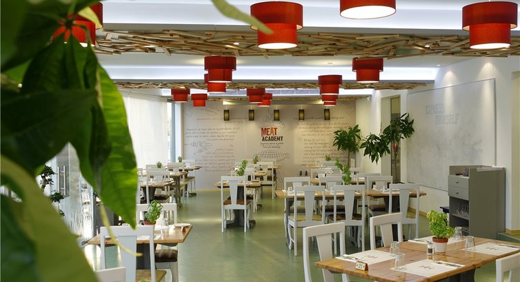 • Розклад роботи основного ресторану Meat Academy: сніданок, обід, вечеря.
