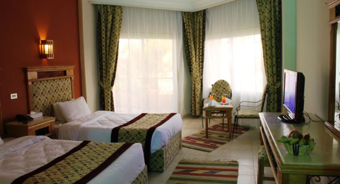 Ездили второй раз в Хургаду.В прошлый раз в октябре с детьми,но в другой отель, кстати недалеко от этого.В этот раз решили съездить вдвоем с мужем в марте.Начну с заселения-приехали мы в отель в 9 утра,но заселили нас только после 13.00,так как выселение у них в 12.00,а заселение после 14.00.Браслеты одели сразу,поэтому мы и позавтракали еще .Погода была ветренная.Температура днем около 25,ночью 17-20.Номер дали большой,с тремя большими кроватями,сейф,холодильник,кондиционер,душевая кабина,телевизор с несколькими русскими каналами.Иногда в номере славливал Вай Фай.Море прохладное,но мы купались в нем каждый день.Вход в соре долгий,метров 300 до глубины,но можно по пирсу пройти.Вода чистая.Пляж-песочек.На пляже есть ручной пеликан-Наташа)))Несколько бассейнов.В них была прохладная вода,только один подогреваемый,который в горками аквапарка.Их там всего две.Включают на час,потом выключают,потом снова.Лежаков хватает,но это только потому,что отель заселен процентов на 30-40.Еда разнообразная,есть и мясо,и птица и рыба и овощи и сырые и на гриле и тушеные.Выпечка очень вкусная и разнообразная.Фруктов,конечно,нет,но это потому что не сезон.Были апельсины и бананы.Финики еще были.Спиртное ,конечно,слабенькое,но зато хорошо пъется .Анимация никакая.Т.е.ее вообще не было.В баре на втором этаже вечером музыка до 00.00 и из развлечений Пул.Вай фай на ресепшене,в столовой,и в номерах некоторых ловитДа,есть там два ресторана,а ля карта,итальянский и монгольский.Но мы не ходили туда,так как наши знакомые(там познакомились),сходили туда,и ушли голодными.Говорят,лучше бы в столовой поели.Ездили на рынок.Ничего особенного там нет,если только сувениры какие прикупить,потому что шмотки там как и у нас на рынке, а по цене еще и дороже.Ездили на Сафари,конечно,не то ,что мы ожидали,там расхваливают,что можно погонять,но не тут то было,все колонной тихонько едут пол часа в одну сторону,в деревню бедуинов,потом вечером назад.На другие экскурсии ездили раньше.Стоит там поехать на райский остров(хорошая экскурсия).В целом отдых понравился.Мы ехали туда отдохнуть от нашей домашней суеты,побыть вдвоем,потому что дома не получается,трое деток не дают.