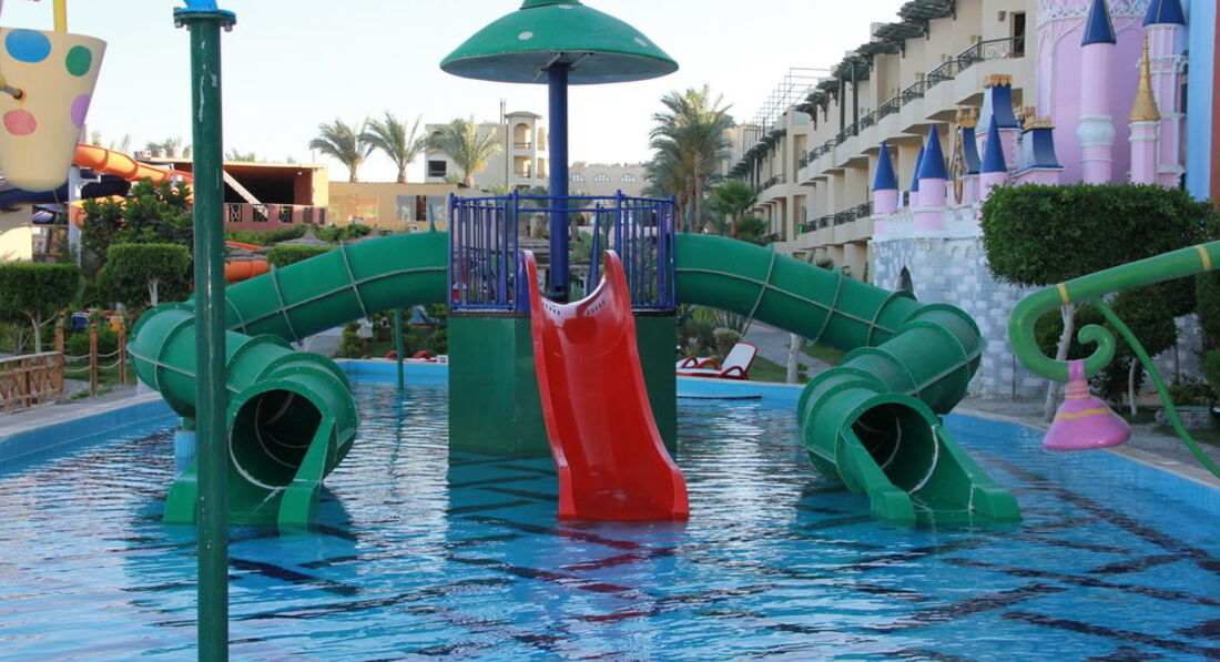 Длинный бассейн, который идет вдоль корпуса до самого пляжа тоже просится на капремонт. Мини аквапарк небольшой, половина леек не работало, но детям до 10 лет, думаю, вполне хватало. Зато есть две вполне приличные водные горки.