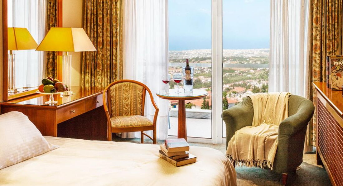 Всього 50 номерів: Standard Singles (~18 кв.м), Standard Doubles (~21 кв.м), Singles & Doubles Superior (~24 кв.м), Suites Executive (~75 кв.м), Suites Family (~ 35 кв. Типи номерів: Standard Single Двоспальне ліжко. Standard Double 2 односпальні ліжка, об'єднані. Single & Double Superior Робочий стіл, балкон з видом на місто та на море, оновлена ванна кімната. Suite Executive Елегантний стиль, окрема спальня з великим двоспальним ліжком, просторий салон з диванами та кріслами, 2 ванні кімнати (одна гостьова), халати. Suite Family Спальня з двоспальним ліжком, салон з робочим столом, кріслом та розкладним диван-ліжком. Вид на сосновий ліс.У номері: Балкон/тераса Ванна/душ Кондиціонер Супутникове ТВ Телефон Фен