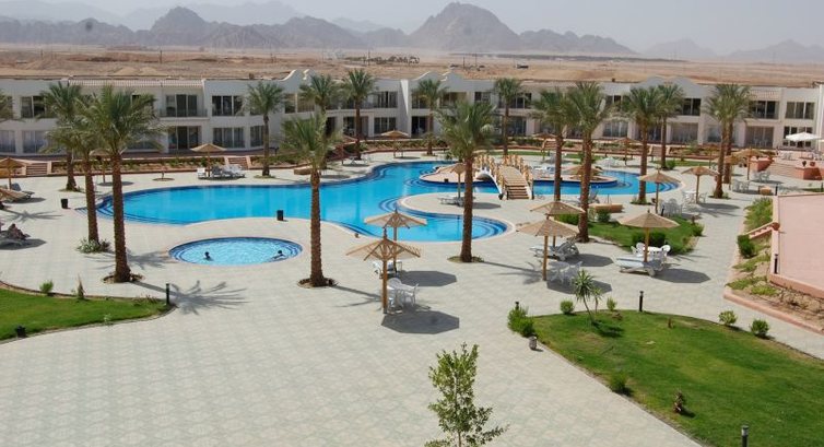 Россияне не ездите в этот отель!!!!!!!!!!!!!!!!Мы были там 01.08.2015г.арабов и мусульман было пруд пруди , а русских и десятка семей не было. Номера для нас дают с видом на стройку или на пустыню, а черным на бассейн, и номера у них круче(плазма, хороший кондиционер, коврики, новая мебель) они при заселении денег дают за номера . Я ,когда приехали зашла в номер и была в шоке,-у нас номер на троих ,а кровати две, один светильник на всю комнату, телик старый, в ванной полумрак, света маловато, полотенец на 3х 5 шт., на балконе один стул ,а стола нет. Я пришла на рецепшин сказала что меня не устраивает ,а в ответ ,(номеров нет, подойдите третьего может будут).После скандала мне всё принесли. Одеял у нас не было , принесли такие что у бомжа чище. Короче все что пишут про этот отель враньё ,напишу минусы.....чтобы попасть на море надо вечером записаться на автобус который идёт в 9.00,и 10.00,чтобы утром поехать. Автобус никого не ждёт, ехать 15 мин.,на пляже выпивка вся платная, один душ, забирает автобус в 10.30,13.00,13.30.(по моему так ,про вечер не помню ,не ездили)Если пешком идти от отеля до пляжа других отелей, то это 20 мин. пешком ,ещё ни везде пропустят, но есть платный вход 2 доллара с 1 чел.. Обратно мы ехали на такси за 2 дол. до отеля. Бассейн грязный, чёрные в одежде(пляжной)купаются, везде пластиковые стаканы валяются. Аниматоры детьми не занимаются, вечером скукота . Еда была одинаковая все 12 дней. Короче отель на 1 звезду, номера убирают плохо, мы даже таракана поймали в душе(3 см в длину)Через 4 для я устроила скандал на рецепшене и меня бесплатно переселили в другой номер, он был получше. Народ не трать свои нервы и деньги на поездку туда .