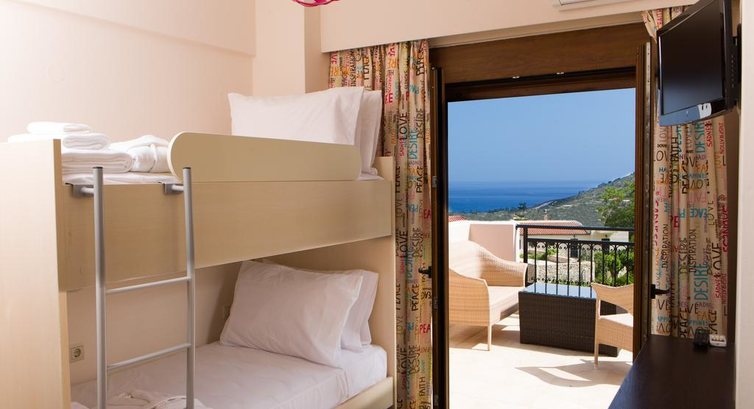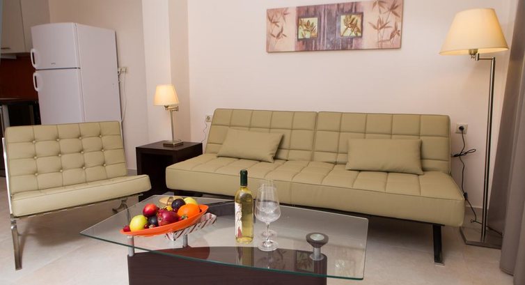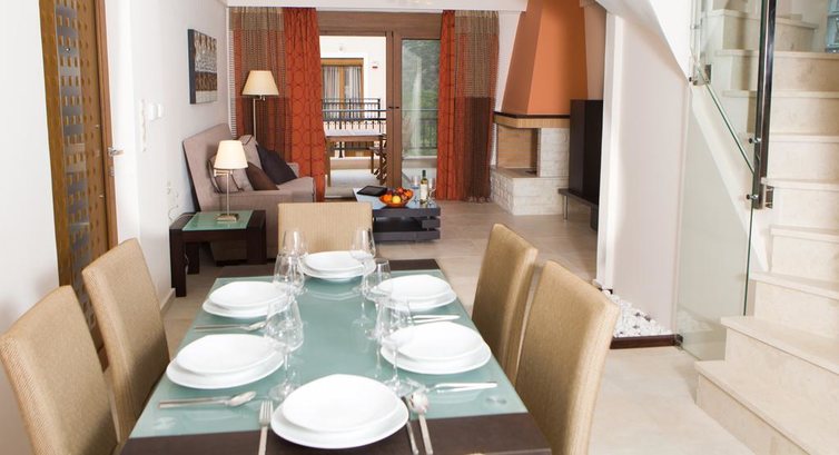 Типи номерів: • Suite Apollo / Suite Demetra (60 м2, одна спальня, одна ванна кімната, макс. 2+2 чол., Вітальня з обідньою зоною та обладнаною кухнею) • Villa Athina / Villa Artemis / Villa Aphrodite (110 м2, 3 спальні, 2 ванні кімнати, макс. 6 чол., 2 вітальні, обідня зона та обладнана кухня (електрична плита, холодильник, посудомийна машина, кавоварка, тостер), с виходом на веранду.Одна спальня з двоспальним ліжком, друга - з двома односпальними, третя - на нижньому рівні, без дверей.) • Villa Hera / Villa Zeus (120 м2, 3 спальні, ванна кімната + вбиральня, макс. 6 чол. Одна спальня з двоспальним ліжком, одна – з двома односпальними, одна дитяча з двоярусним ліжком. Вітальня з обідньою зоною та обладнаною кухнею, балкон ).У номері: • ванна або душ • фен • індивідуальний кондиціонер (безкоштовно) • кухонна зона • праска та прасувальна дошка • пральна машина • CD/DVD-програвач • супутникове ТВ