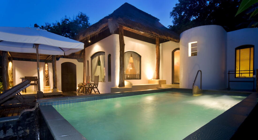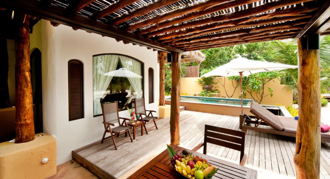 Были в этом отеле в ноябре 2010 года 4 дня. Это- самый шикарный отель на острове. У нас был номер с бассейном. Сам по себе номер необычный, очень большая ванная и душ под открытым небом. Куча всяких флакончиков. Очень вежливый персонал. Мы брали путевку с завтраками. Шведский стол не богатый в разнообразии выбора, но можно заказать что то из меню, все принесут на красивой тарелочке, очень красиво выложат и тд. На завтраке делают фреши из любых тропических фруктов, любые смешивают и бесплатно. Мы пили личи-гуава, очень вкусно! Несколько раз мы там поужинали, меню очень богатое и разнообразное, все наелись. Но в северной части острова куча пляжных ресторанов, где я вам рекомендую попробовать различные морепродукты. До этих ресторанов ходят такси, которое легко поймать, выйдя из отеля. Мы отдыхали с двум взрослыми и двумя детьми- 7 и 13 лет. Детям там не особо интересно, отель больше подходит для медового месяца и тп. Но это не помешало нам прекрасно провести время! Пляж идеально чистый, белый песок и светло- голубое море..как в рекламе баунти! В общем отель я вам рекомендую 100%!