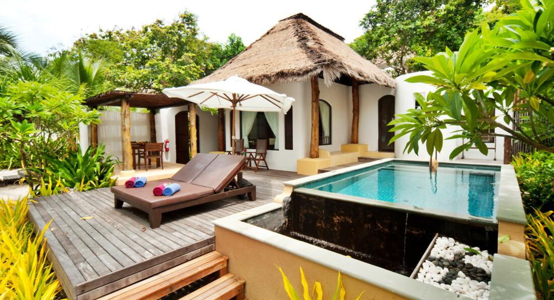 Отель просто замечательный! Тихий, чистый, уютный. Пляж с белоснежным песком, бирюзовая вода, диковинные птицы. Персонал вышколенный, даже чересчур. Ощущаешь себя белым господином, приехавшим в свое имение после долгого отсутствия. Посещали этот отель с женой. Отель создан для романтического отдыха. Детям, равно как и тусовщикам, там делать нечего. Бунгало с собственным двориком и бассейном расположено так, что создается ощущение, что на острове кроме вас и слуг нет никого, купаться в бассейне можно и без купальника - никто вас не видит. При этом, уборщиков вы тоже не увидите. Они производят уборку, когда вы идете в ресторан, или купаться в море. Убирают два раза в день, вечером расстилают постель. Кровать очень хороша. При заселении заполняете анкету, в которой в числе прочего указываете аромат, который предпочитаете из списка (мы выбрали лемонграсс). Уборщики зажигают аромалампу с выбранным вами ароматическим маслом. Есть кофемашина, капсульная. Запас капсул для нее пополняют постоянно. Чайник, минибар как и в других отелях. Приносят в номер фрукты. Отельный спа-салон недешев, но массаж качественный. Обедать и ужинать можно в отельном ресторане - выбор блюд и их качество на высоте. Обед, ужин на двоих без бухашки получается 1500-2000 бат. Русских в отеле нет. В общем, если вам посчастливилось иметь любимого человека, с которым вы можете быть наедине долгое время и не надоесть друг другу - этот отель для вас! Совет: не берите бич фронт виллу - там как на витрине. У нас была вилла 215. На мой взгляд - самая хорошая - и вид на море и уединение полное, можно в бассейне черт-те чем заниматься!