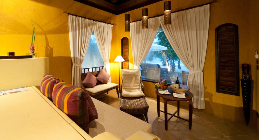 Типи номерів: 10 Garden Villa (макс. 2 чол., заг. пл. ділянки вілли 100 м2) 16 Garden Pool Villa (макс. 2 чол., заг. пл. ділянки вілли 100 м2) 11 Beachfront Pool Villa (макс. 2 чол., заг. пл. ділянки вілли 100 м2) 2 Beachfront Pool Villa № 101 та № 102 (розташовані на першій лінії, макс. 2 чол., заг. пл. ділянки вілли 100 м2) 1 Suite Villa, One Bedroom (вітальня, спальня з дверима, макс. 2 чол., заг. пл. ділянки вілли 200 м2)У номері: