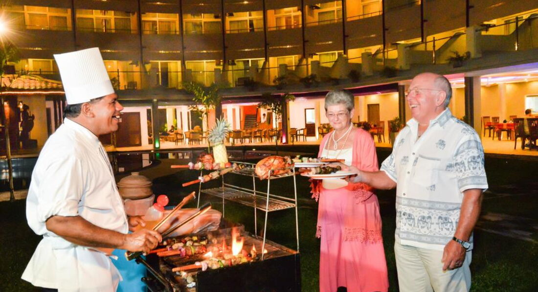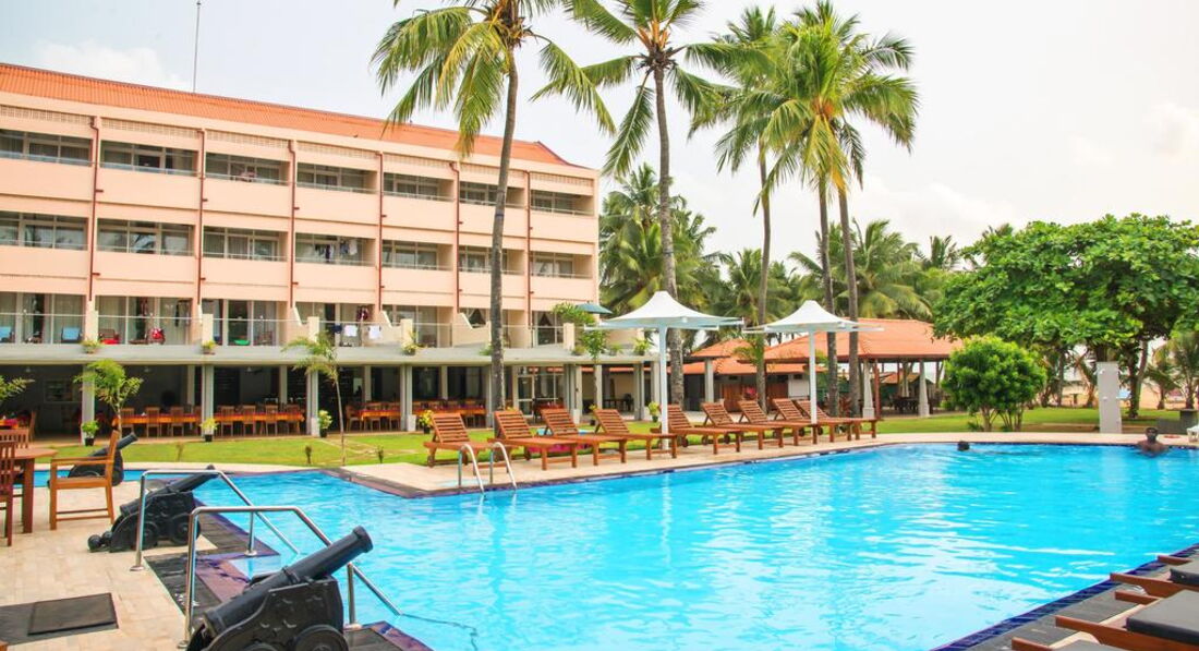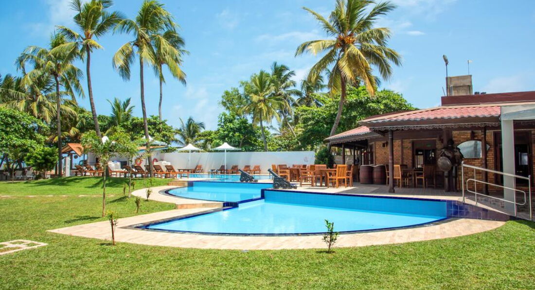 Территория отеля небольшая, сам отель требует реновации, так как очень старый. Это все отрицательные характеристики отеля, которые для нормальных туристов существенного значения не имеют. Положительные характеристики: очень удачное расположение на 1-й линии, до центра Негомбо 5-10 минут на тук-туке (200 рупий>50 руб.). До аэропорта и Коломбо-30 минут на такси. Возле отеля множество магазинчиков с сувенирами и чаем, разнообразные кафе и турагентства. Пляж немноголюдный, лежаки на пляже не нужны,так как из отеля до линии прибоя 15-20 метров. В самом отеле лежаков хватает на всех, и у бассейна и на территории. В отеле есть "пиратский" бар, цены средние, на улице, естессно,намного дешевле.Территория чистая, ухоженная, на деревьях живут смешные бурундучки. Еще много ворон (грачей?), но это проблема всего побережья Шри-Ланки. Питание ( у нас были завтраки-ужины) нормальное, голодными не останетесь ни при каком раскладе. Много острых блюд и карри, но мы за этим и ехали, так что нам в самый раз. Номер старенький, без излишеств, но все необходимое есть. Немного напрягал душ из стенки, но потом попривыкли, да и в номере только спали. В номере есть Wi-Fi, но работает неровно:иногда нормально, иногда мертвый. Проблема, похоже, у провайдера. Местная мобильная связь нормальная, звонок в Россию- 6 руб.минута. Отель для семейных пар без детей, анимация на Шри Ланке отсутствует как класс. Молодежи тоже будет скучно, тусовки или в Негомбо, или в отелях Хиккадувы, там более молодежная специализация. Для недельного релакса и поездок по экскурсиям-отель самое то! Туристам с завышенной самооценкой, а также с любовью к поиску трещин в кафеле и оценки возраста лежаков - вам не сюда. Нормальным людям- добро пожаловать, не пожалеете!