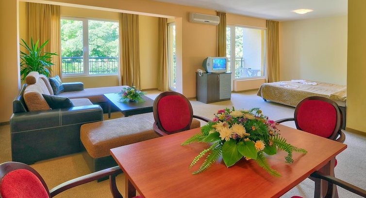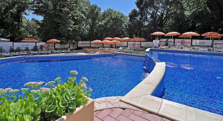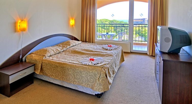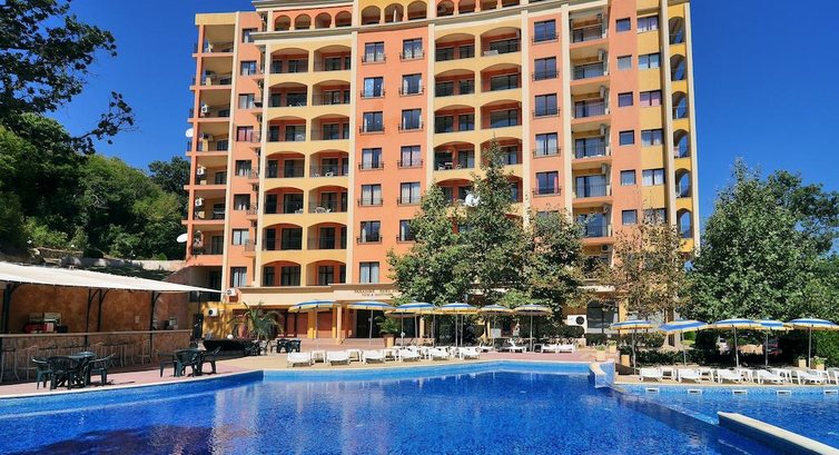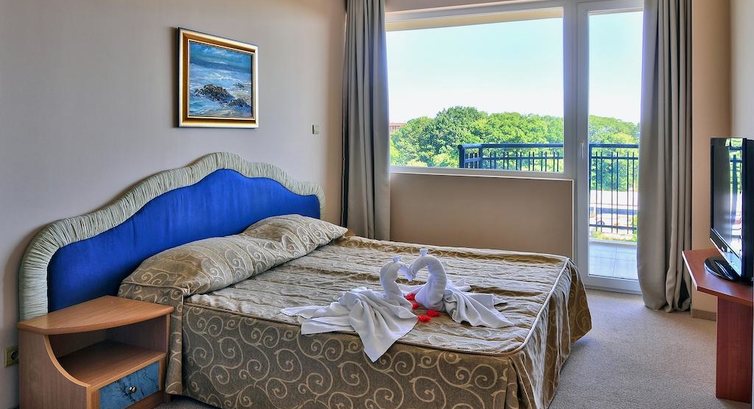 Отдыхали в этом отеле в августе 2013 г. вдвоем с мужем. Приехали поздно, примерно в 23.40 ч., нас сразу же заселили в номер. Выдали сухой паек, так как на ужин мы не успели. В номере нам все понравилось. Мебель сравнительно новая, сантехника новая. Номер огромный, мы заказывали апартаменты. Территория отеля не маленькая. Кормили нормально. За все время пребывания ничем не отравились и голодными не были. Сервис тоже вполне нас устраивал. Никаких нареканий нет. Все понравилось. Хотя до моря идти очень далеко. Море было уже прохладное. В целом, в Болгарии неплохо, нам понравилось. Все понимают русский язык и многие местные жители говорят по-русски. На курорте было много немцев.