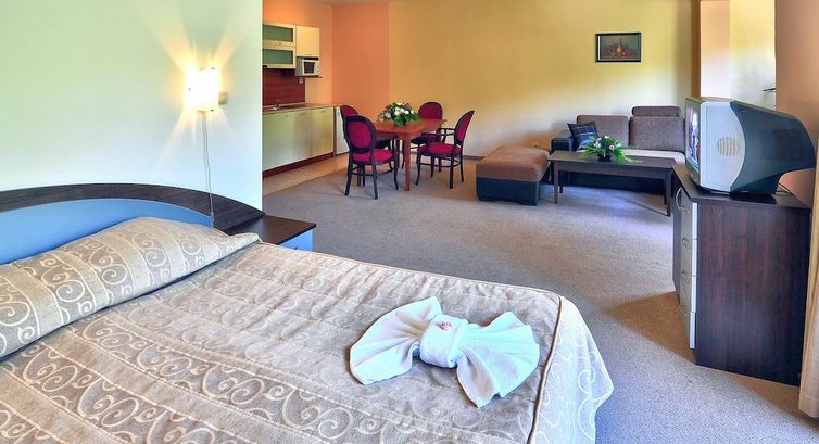 Оne Bedroom Аpartment – спальня з двома односпальними ліжками або одним двоспальним ліжком, вітальня з кухонним куточком (без обладнання) з суміжними дверима; 58 апартаментів з ванною кімнатою з ванною та 27 – з душем, макс. 3 дор. + 1 дит., 65 м2,