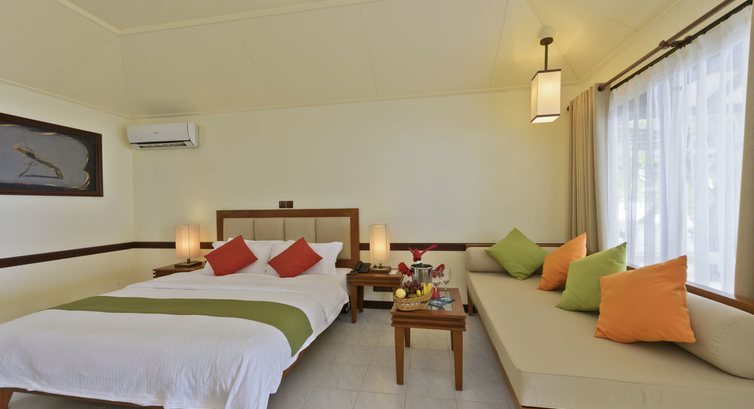 Тихий, немноголюдный отель, кажется, что в нём никого нет, когда идёшь по пляжу, но когда приходишь в кафе кушать - там полно народа- парадокс! ))) Жили в намерах с видом на море, прямо на берегу - это кайф. Ежедневно плавали с масками прямо у отеля, глазели на рыбок (может быть кораллы и умерли в индийском океане изза потепления, но, тем не менее рыбки есть!). Кормили хорошо, не можем сказать что очень разнообразно, но на неделю меню не надоело. Из острой еды - да, можно много чего найти, но и европейской еды тоже очень большой выбор. Ежедневное кормление акул - клёво! Кормление скатов - восторг. Ночная рыбалка - порадовала! Куча маленьких крабиков на пляже, которые разбегаются от света мобильного фонарика(очень забавно), разные виды ящерок на деревьях и курлыкающие птицы - ахаха! А ещё летающие лисицы с дерева на дерево. Чистый и спокойный океан....чистый пляж! Блин, и это всё на небольшом острове!!!!!! 7 дней на этот остров - полный релакс. Хотим ещё (но это вопрос цены конечно). Отличное место отдохнуть вдвоём (мы ездили без деток, им там тоже, уверена, понравилось бы, есть площадка детская и море мелкое!!! Для детей нужен костюм от солнца не забыть!). А ещё там магазин с сувенирами прям на территории и они даже дешевле чем в аэропорту)