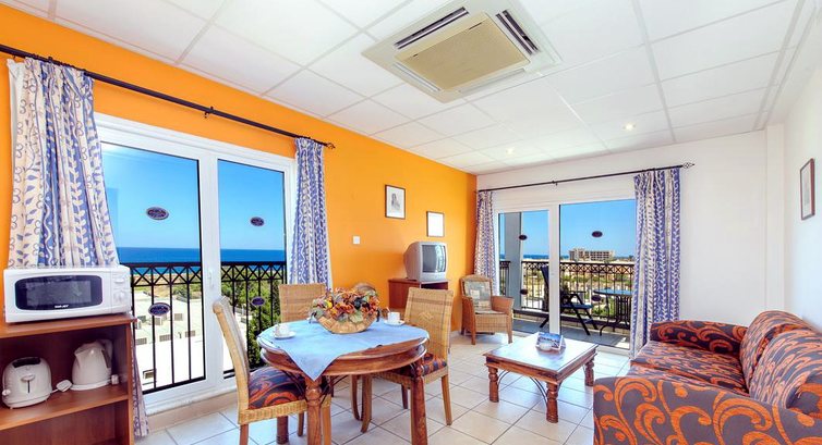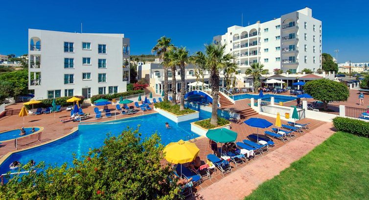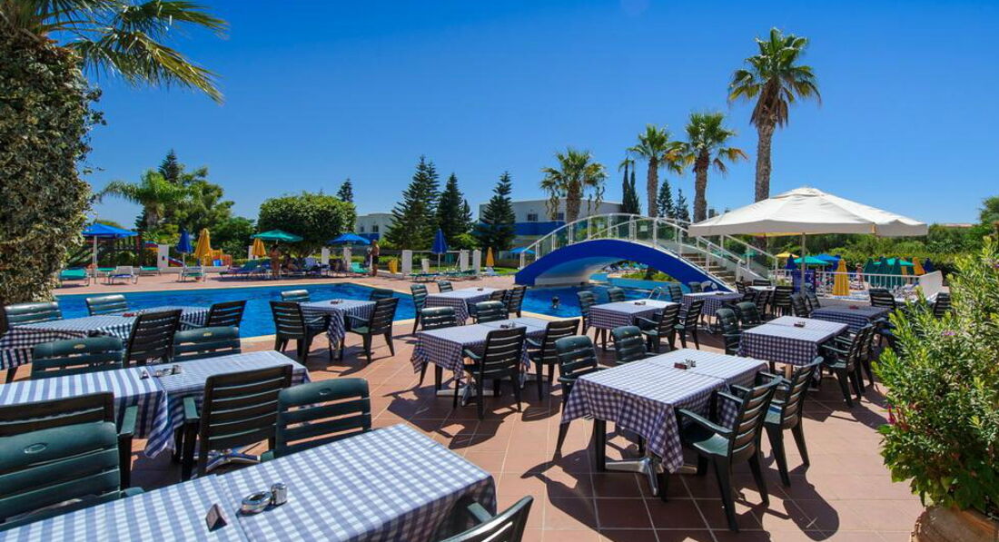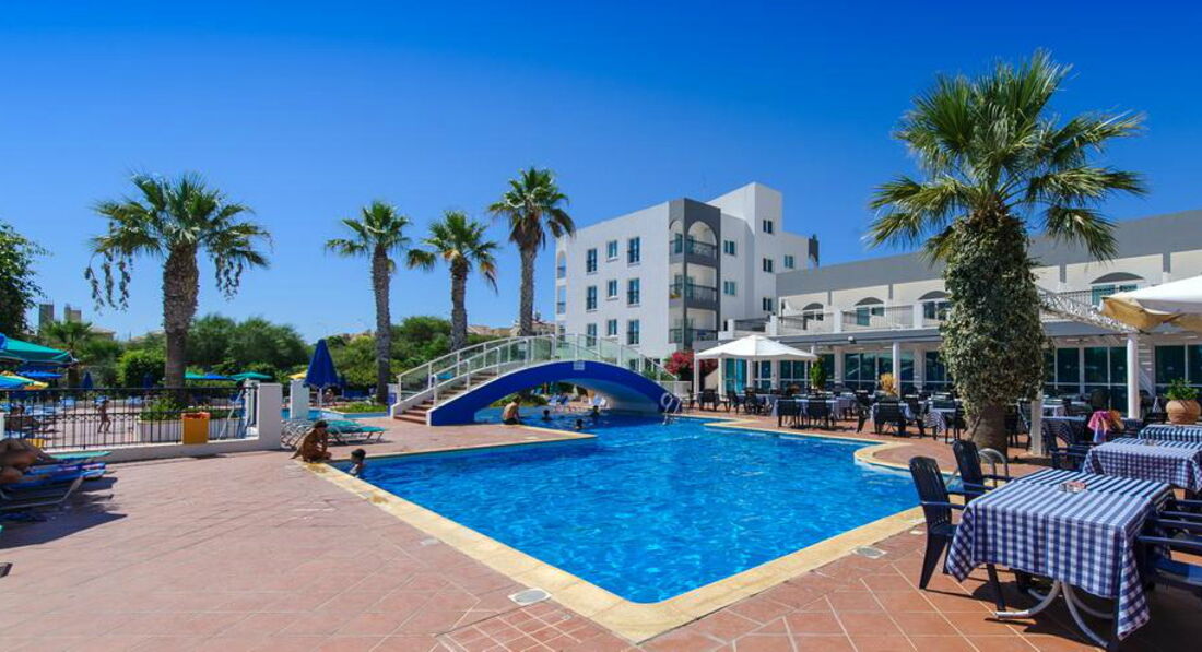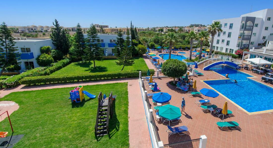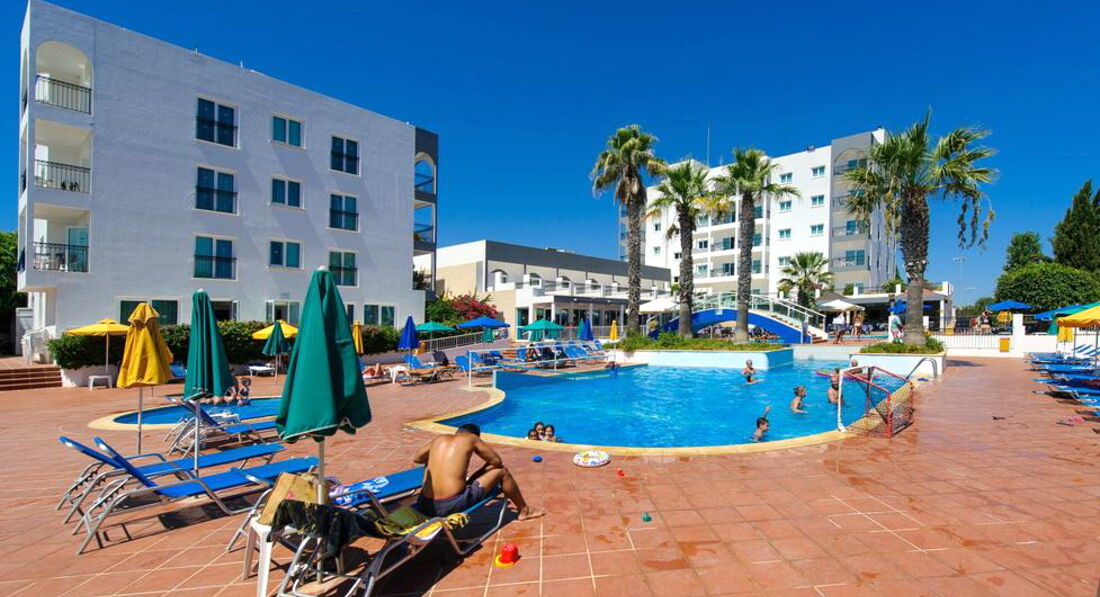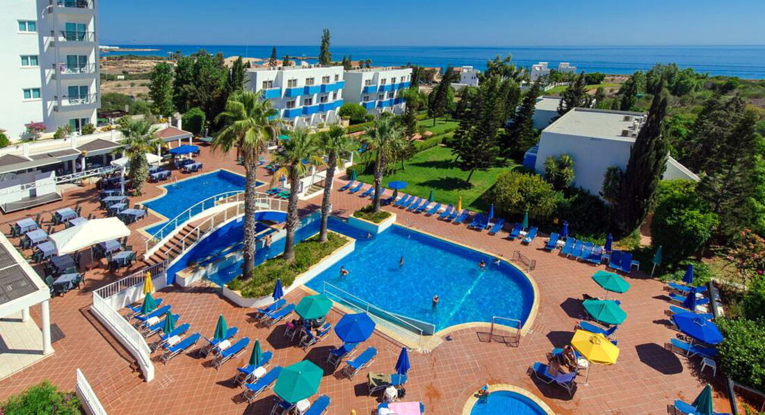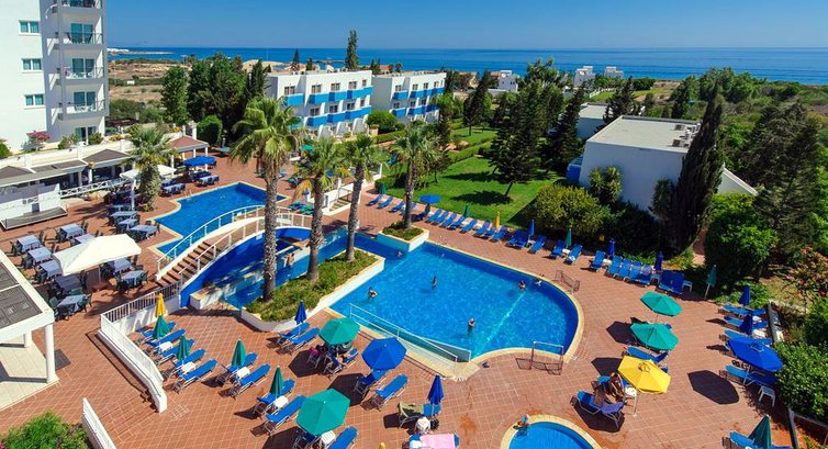 Отель находится фактически на отшибе, до ближайшего магазина, который таковым сложно то и назвать метров 800, и там полноценных продуктов не купишь. Т.е. про рыбу, мясо и т.п. можно забыть. Максимум йогурты и молоко с творогом. Остальное всякая синетитеская ерунда и сувениры. Мясо и рыбу я видела только в магазине Метро, но ехать до него минут 30-40 на 101 автобусе петляя по побережью. В целом все очень дорого, маленькая баночка йогурта 1,7 евро, самое дешевое вино от 3,5 евро, маленькая коробочка клубники 2,5 евро, кг картофеля и то 0,95 евро. До набережной Протараса надо ехать на 101 автобусе примерно 4-6 остановок, в зависимости в какой части ее хотите выйти. В Айа-Напе с магазинами намного получше. Теперь про отель. Мне приходилось отдыхать в дешевых отелях, но этот превзошел все ожидания. Еда была отвратительная, мало того что одно и то же, так еще и очень плохо приготовлено. На завтрак стандартные яйца вареные, жареные и омлет, жареная ветчина, йогурт, овсянка и хлопья с молоком Но не было сыра, оливок, овощей. Обед и ужин состоял каждый день из тушеной рыбы пангасийс, каких то куриных отходов высушенных в корку, макаронов, риса, подливки, один салат типа оливье, но без мяса, 2й из рукколы с ветчиной, 3й из листьев салата и следами огурцов и помидор (может один огурчик и одна помидорка на весь тазик). Из разнообразия были - зажаенная в сухарь свинина, тушеная морковка, тушеный горошек, брокколи, цветная капуста, зажаренные в сухарь тефтели. Закуски в баре - картошка фри, макароны типа по-флотски, гамбургер с сухарем из подобия котлеты, я даже побоялась попробовать, жареные палочки в панровке из рыбы и из курицы, которые обычно продаются на развес в магазинах, сэндвичи с ветчиной, салат из тех же листьев салата завявших. Съедобны были только макароны, салат и сэндвичи, на завтраке йогурты, как в принципе фрукты. Всегда были арбузы, дыни, мушмула (нисперо), иногда абрикосы, персики недозрелые, в конце появились яблоки и апельсины. Персонал был отзывчивый и добродушный, но ленивый)) В Греции и на Кипре очень любят детей! Ленивый потому что готовили отвратительно и без фантазии, в баре похоже с прошлого года не вытирали столы, делали все ооооочень медленно. Зачет бармену Майку! Молодой парень, очень улыбчивый и немного говорит по-русски, работает еще в клубе в Айя-Напе, что чувствуется по музыке в баре, когда он приходит, может сделать коктейли не из списка по вашему вкусу. 1 раз была детская анимация, но мы не успели на нее и 2 раза взрослая. Это ужас просто, напоминает деревегскую свадьбу, русские песни столетней давности, танцы и ор пьяных русских(((( Вообще все постояльцы в отеле русские и почти все быдло. Накидываются водкой в обед и начинают песни орать. Детская площадка так себе. Пляж ближний для детей отличный искусственная бухта с насыпным песком на берегу, некоторые говорили что в открытом море теплее. Идти довольно близко, минут 5. Номер был в основном корпусе рядом с рецепцией и сценой. В целом лучше чем я думала, был космеический ремонт недавно. Интернет там ловил кстати, а там он платный - 10 евро за 120 минут или 30 евро за 7 дней анлим, берет только на рецепции и возле бара. О! Надо покупать переходники для розеток и на Кипре левосторонее движение. Персонал на ресепшене русскоязычный, все нормальные за исключением "гестапо" - блондинки с короткой стрижкой. Администратор