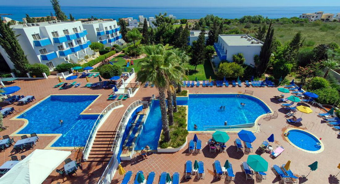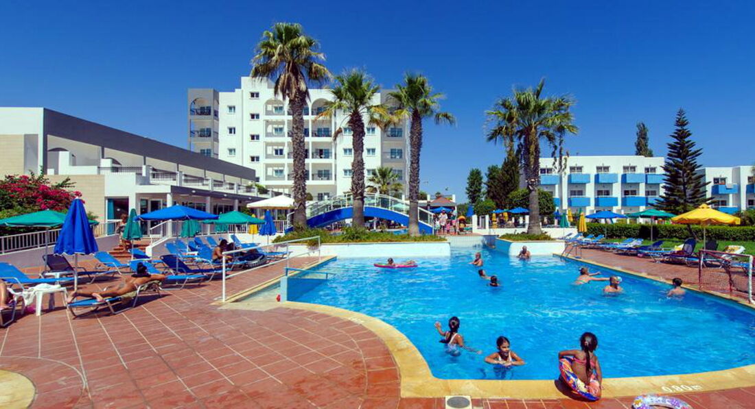 Мы отдыхали втроём с мамой и сестрой в начале мая. Купили путевки не дорого и поэтому от отеля не ждали чего сверхъестественного. Но отель оказался даже лучше, чем ждали. Мы прилетели в обед и нас сразу заселили в трёх местный номер, мебель в номере не новая, но все было чисто, есть маленькая кухня на входе, не большая комната с телевизором и обычная ванная комната, все работало, всегда была горячая вода, но особенно порадовал балкон с видом на бассеин и море. Постельное белье меняли каждые три дня, полотенца каждые два дня и убиралась так же, притензий не было. Минусы есть, например дверь входная хлопала ну очень громко и так у каждого в номере и нет бесплатного вай фая, а платный не дешёвый. Но мы не сидели в отели целый день, мы очень много гуляли, ходили на море, в центр и на экскурсии. Поэтому отель для нас показался хорошим. У нас был включён завтрак и ужин. Всего было всегда очень много и вкусно. Всегда были фрукты, на завтрак яичница, омлет, сосиски, овощи, всегда несколько вид сыра и колбасы, кофе и лимонад в автомате. На ужин всегда был очень вкусный десерт. До центра едет автобус, но можно и дойти пешком пару раз и насладиться красотой вокруг.