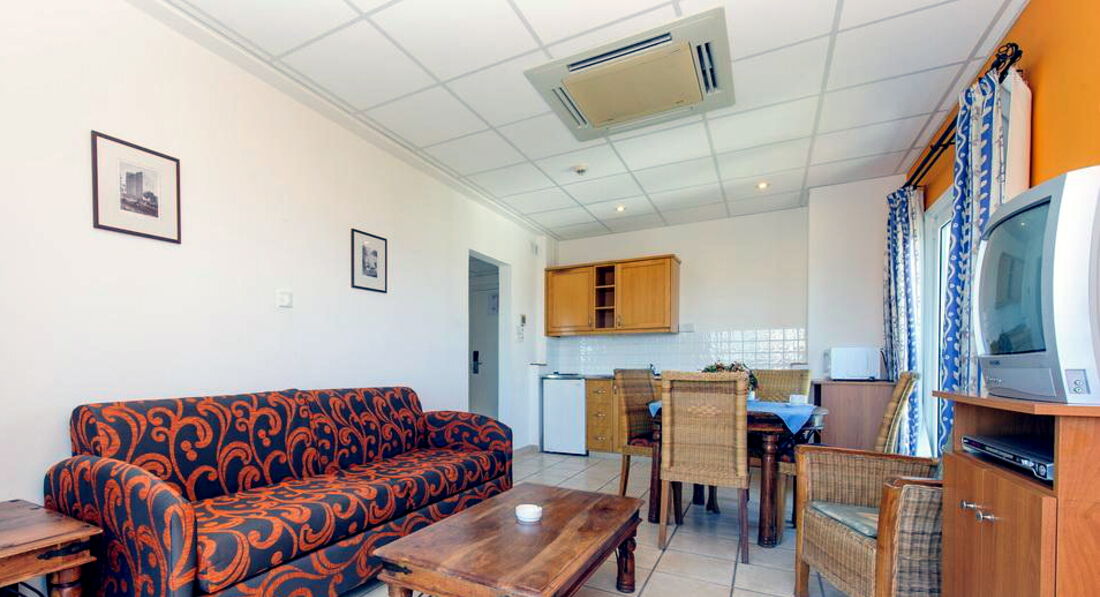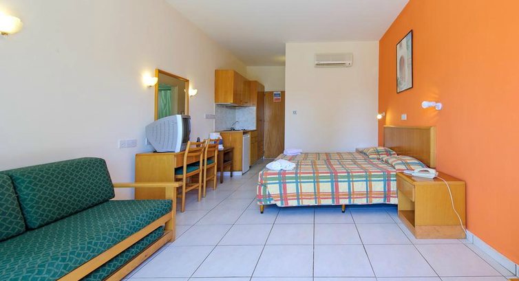 Сразу укажу, что попала в этот отель случайно по ошибке менеджера турфирмы, которая предложила мне его как отель в Айя-Напе, а я, не проверив, согласилась, только посмотрев фото на сайте. Потом начиталась негативных отзывов и страшилок про огромных тараканов. Меня заселили в блок В на 3-й этаж, что порадовало. Номер скромный, но просторный, с балконом. Санузел тоже просторный с ванной. В номере небольшой угол-кухня с плитой и посудой, есть также холодильник. Достаточно чисто, но убирали по-разному, иногда просто меняли полотенца и выносили мусор. За 10 дней постельное белье поменяли 3-4 раза, также часто меняли полотенца. Удивило, что простынь сразу стелили на матрас, без наматрасника.