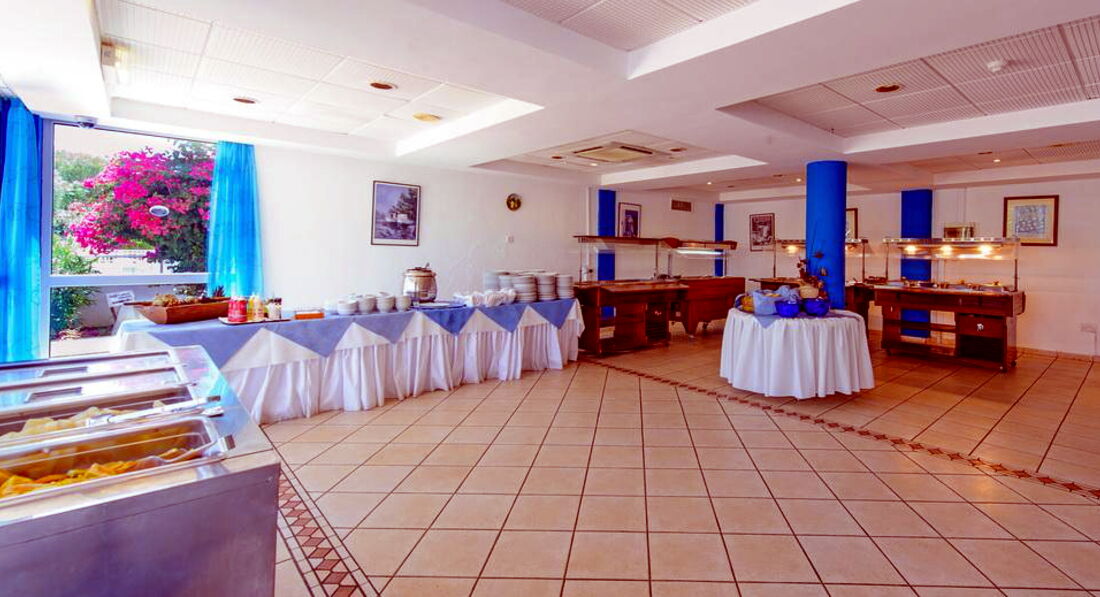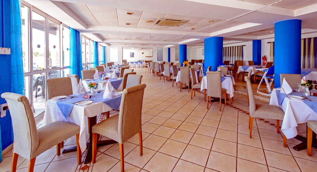 "Гостеприимство" этого отеля просто не имеет границ!!!!!! Администраторы отеля в заговоре с гидами, никакую информацию они не дают, где что находиться и как проехать-"это надо экскурсии покупать". Еда в этом "ресторане" это просто "кулинарное искусство" !!!! Отношение к туристам как к свиньям, люди которые пишут, что еда нормальная? Вы вообще в своём уме?! Засушенная курица, тухлая зелёная! колбаса с утра! Картошка пересушеная, перевареные холодные макароны, а салат- это вообще нет слов! Целый поднос зелени и половинка помидорки и огурчика на ВЕСЬ отель! Сыра не было никогда!!!!!!!Суп- разведённый куриный кубик с водой с острыми специями! Единственное что вкусно это арбуз и дыня! Это единственной нашей едой и было в отеле!Гид от Тез Тур - Зульфия- вообще отдельная личность, экскурсии в 3 раза дороже, чем в 200м от отеля! Где находиться банк, она не знает, предлагает менять деньги в центре Протараса ( естественно курс завышенный на 10-15 руб). Гид не решает вопросы с продлением номера-это говорит наши проблемы! Администраторы не продлили номер , по непонятной причине , хотя номера свободные были! И я тому свидетель была, они сами себя спалили на этом! 8 ч ожидания вылета из отеля на рецепшене с маленьким ребёнком - отдельное СПАСИБО!!!! Просто Твари! А, забыла сказать рядом пляж? Вы серьёзно товарищи ? Если это пляж для отдыха на Кипре! Расположение отеля терпимое, рядом остановки, доехать можно до Айа-Напы -15 мин и центра Протараса 10 , пешком не реально, далековато. Вообщем Кипр- это прекрасные красивые пляжи, замечательная и вкусная еда- в ресторанах и Тавернах. Рекомендую ресторан Тафтарос из отеля налево на горке очень вкусно, большие порции, не очень дорого и очень радушный персонал! Он стал самым любимым. А в этот отель ни ногой! Берегите нервы граждане!