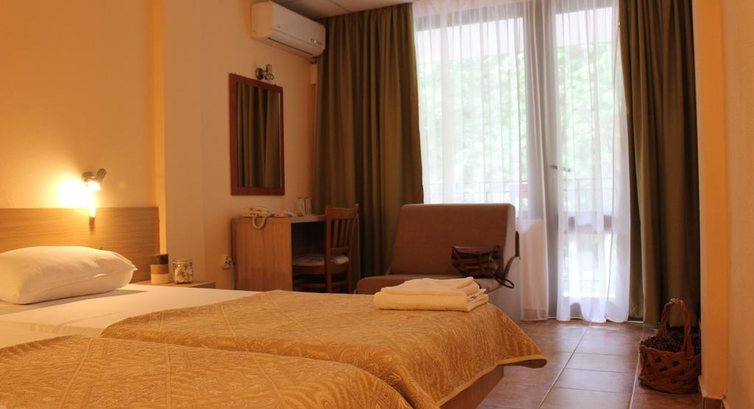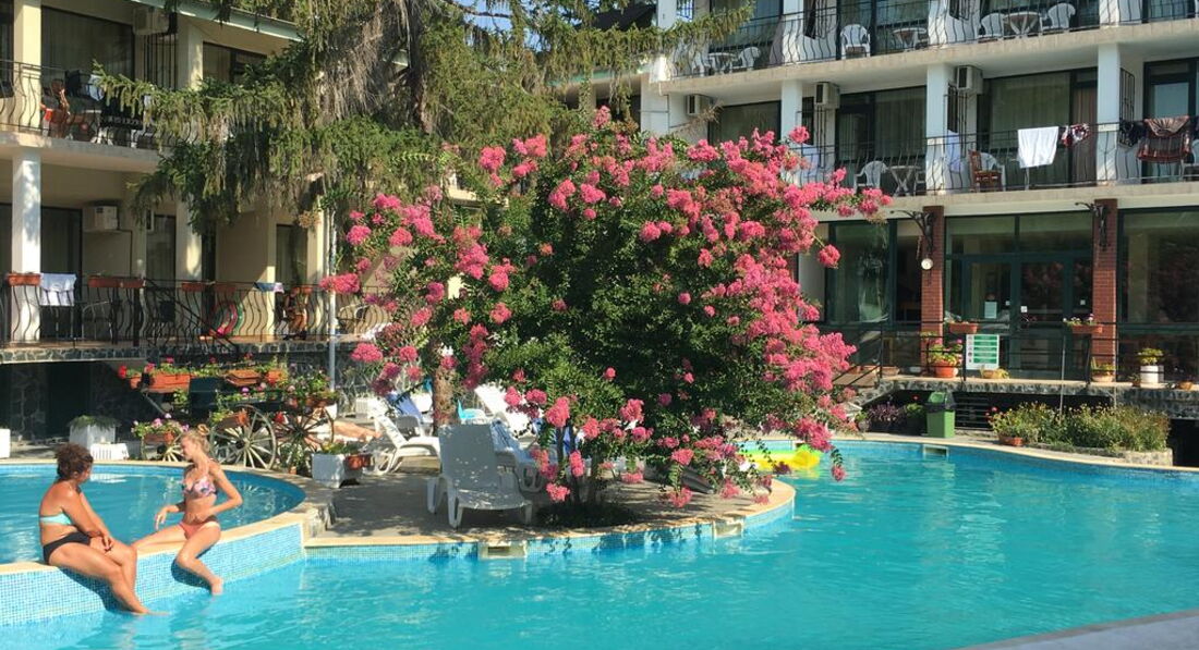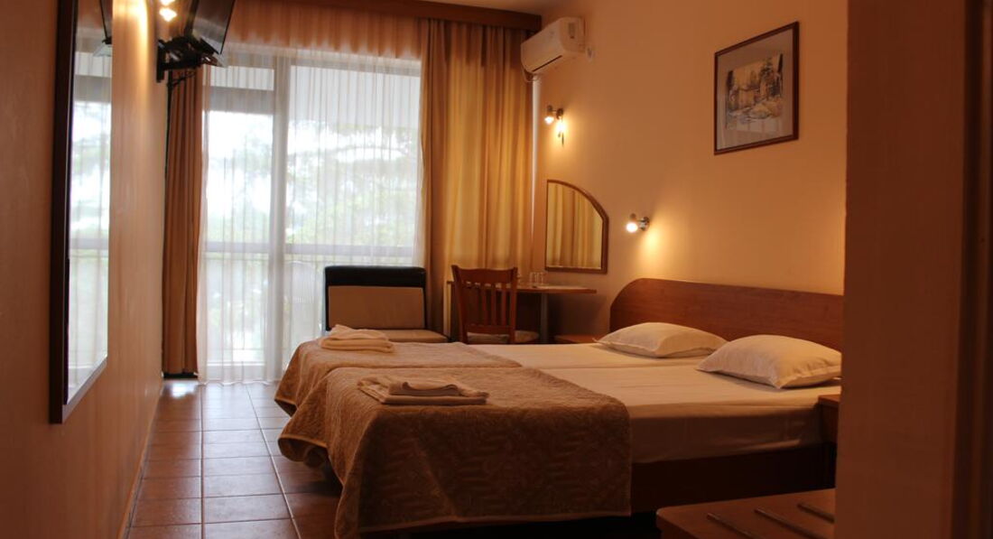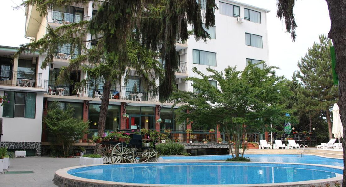 Готель розташований у парковій зоні, за 250 м від берега моря і за 700 м від центру курорту Золоті Піски. До Балчика можна доїхати за 20 хвилин. Відстань до аквапарку "Акваполіс" складає 600 метрів. Готель збудований у 1958 році. Останній ремонт було здійснено у 2014 році. Готель підійде всім, хто обирає сімейний відпочинок.