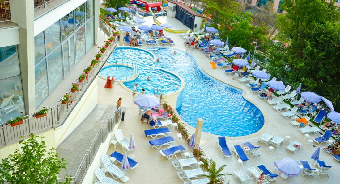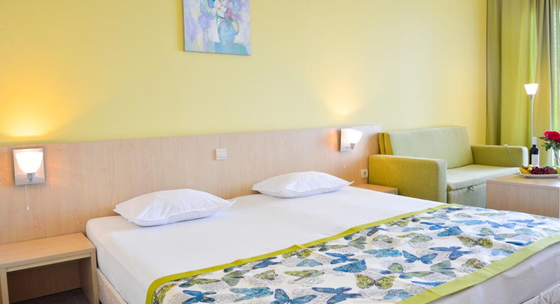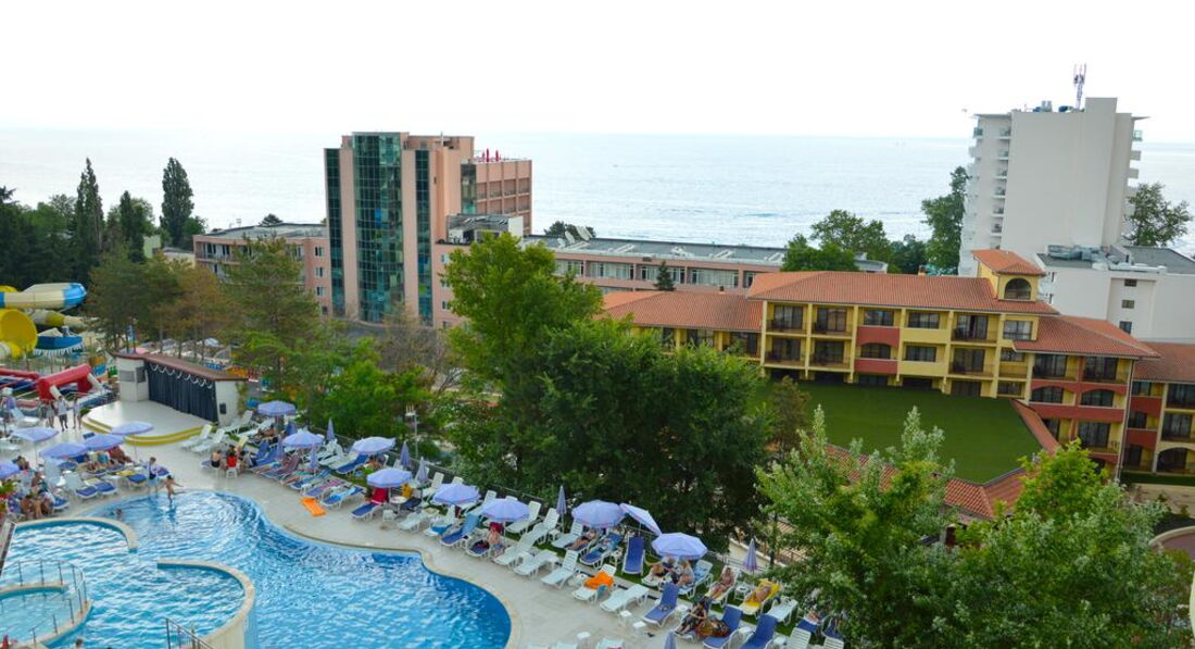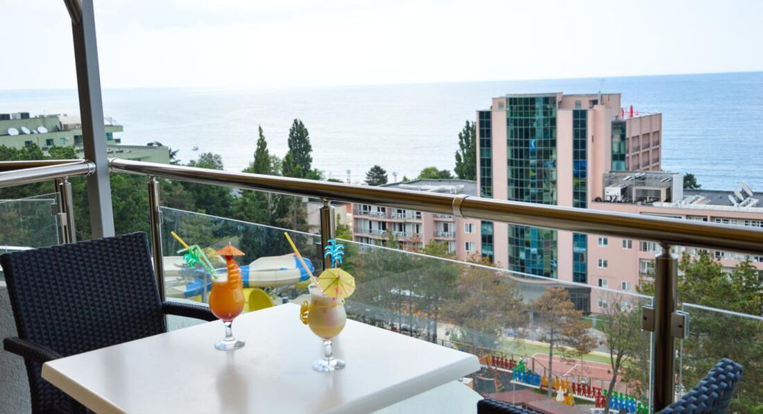 Только вернулись с Золотых песков и спешу поделиться отзывом.Отдыхали мы с мужем и двумя детьми 17 лет.Приехали в 14,00,так,что выдали браслеты и заселили сразу,дали то,что нам понравилось.Это номер 616,апартамент с 2 спальнями,2 кондиционерами и 2 балконами с шикарным видом на море и кусочек горы.Со стороны главного входа в отель,это 1 этаж,но со стороны бассейна и моря получается 6.У нас было ALL inclisiv,но на обед нас не пустили,зато предложили перекусить в лобби баре и в баре у бассейна.Там были только хот доги,очень вкусное мороженое,напитки и фрукты.