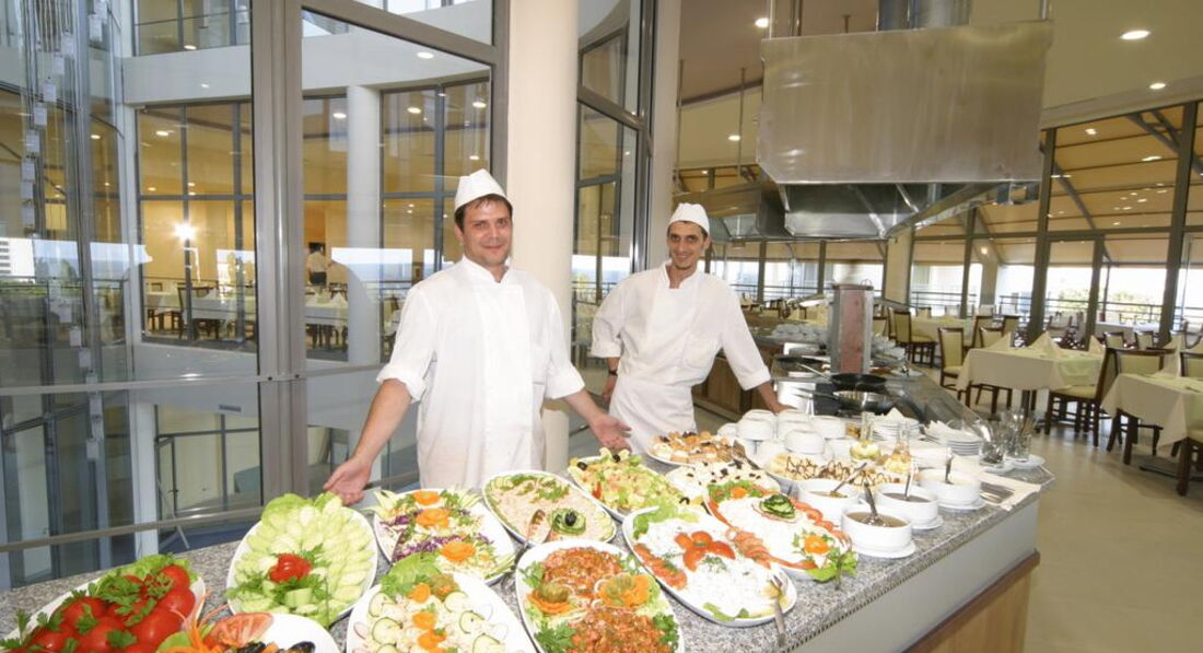 Если учесть, что при любых раскладах, питание на курортах не отличается разнообразием, то его в данном отеле стоит признать хорошим. Из недостатков – мрачное вино и бедный сладкий стол, который, в общем (помимо фруктов) сводиться к бисквитным пирожным. Остальное – в норме.