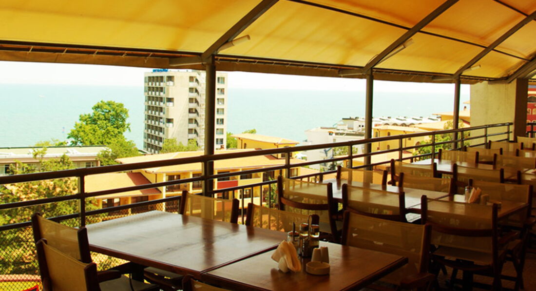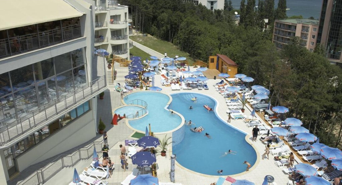 отдыхали почти в начале сентября, персонал в отеле замечательный, очень услужливые и вежливые люди, практически все понимают по русски. У нас была система все включено, еда очень разнообразная и вкусная: овощи, фрукты (кстати мытые), мясо, пару раз запекали поросенка и большую рыбу. что касаемо алкоголя, есть все пиво, вино и т.д., но только болгарское. Все очень чистенькое. Особенно в столовой советую занимать места на открытой веранде, там замечательный вид на море и легкий морской ветерок, очень романтично. До пляжа не далеко, лестница конечно не много напрягает, но после такого обилия еды, в самый раз. Деньги можно поменять у своего туроператора, он приходит в отель и предлагает туристические поездки, меняет деньги более выгодно, чем в самом отеле. Вообще замечательный отель, нам очень понравился. Пляжи у них все бесплатные и муниципальные, у нас был хороший, песочный пляж, ну конечно не идеально чистый, но в России мне кажется пляжи куда хуже. Шезлонги и зонты-платные (довольно дороговато получается, если будете пользоваться ими каждый день, вполне можно обойтись и без них, а эту атрибутику можно купить, там целая прибрежная зона состоит из лавочек с разными примбамбасами.