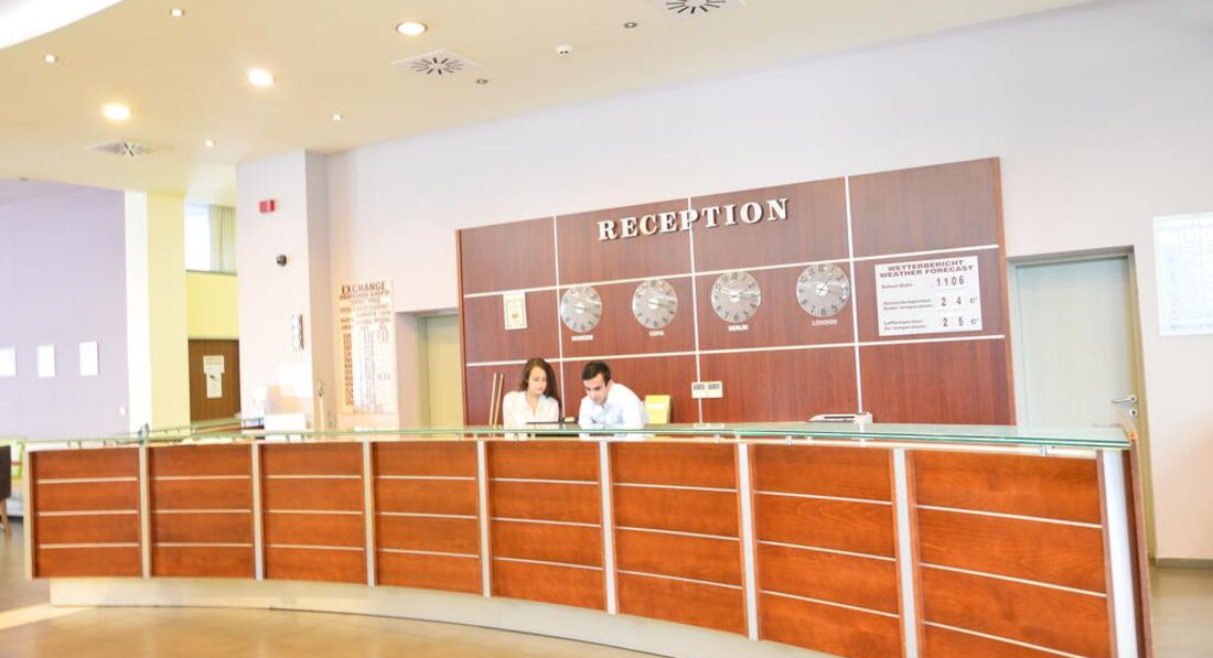 Администратор отеля девушка разговаривает и орёт как последняя базарная бабка.Никакого уважения к туристам,на рецепшине творился хаос в 14:00.Наорала на нас и сказала,что разговаривает только на болгарском и немецком,ну и англ.
