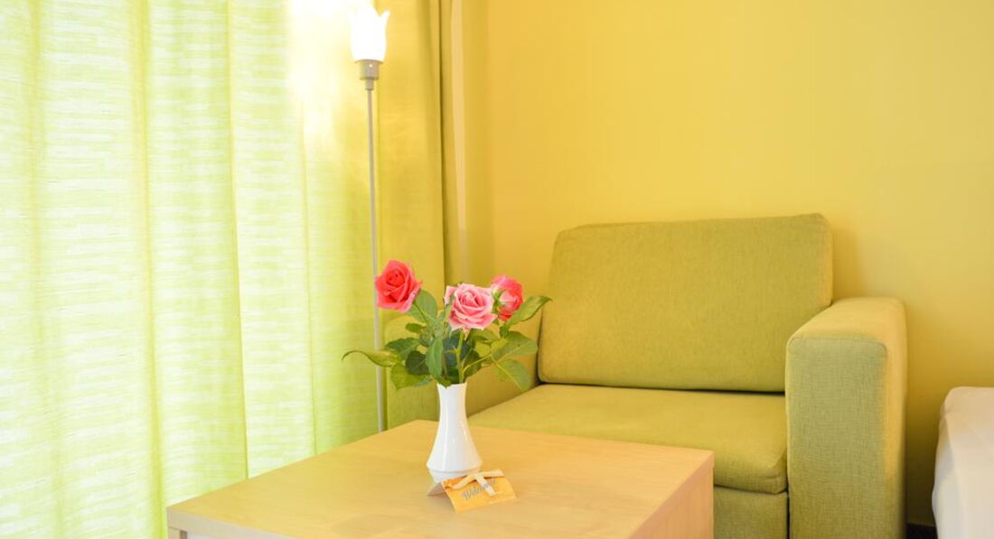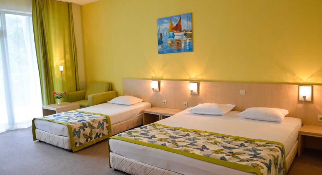 Готель розташований серед зеленого парку, на височині, віддалений від центру курорту. Спуск до пляжу та набережної – невеликими сходами. У готелі затишні номери та доброзичливий персонал. Рекомендуємо для сімейного відпочинку. При проживанні в номері більше двох осіб за системою All Inclusive Plus надається максимум 2 лежаки та парасолька на номер.
