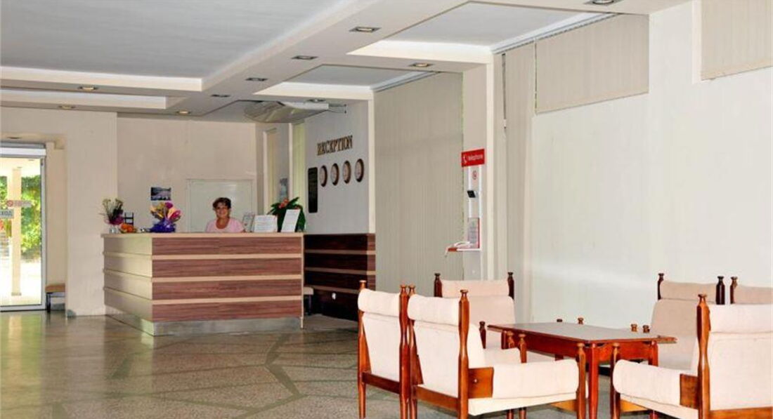 • сніданок з 07.30 до 10.00, обід з 12.00 до 14.00, вечеря з 18.00 до 21.00 – шведський стіл. Полудень – з 16.00 до 17.00 в основному ресторані (кава, чай, випічка, піца). З 10.00 до 22.30 у барі на басейні – безалкогольні напої, чай, кава, розливне пиво, розливне болгарське біле та червоне вино, алкогольні напої місцевого виробництва. Напої іноземного виробництва – за дод. плату
