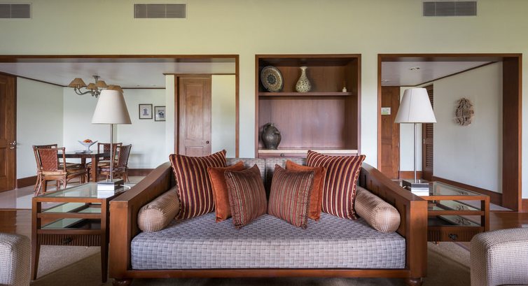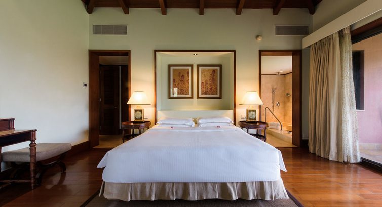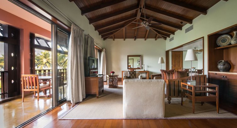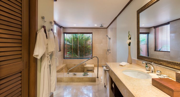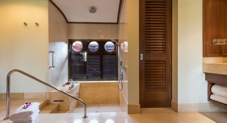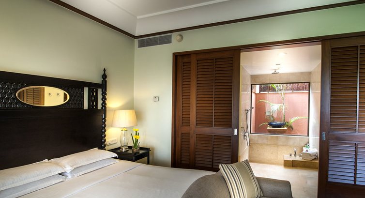 Номер прекрасный, огромная тенистая веранда выходила на лагуну с чистой прозрачной водой, на веранде две софы, кофейный столик, две каменных скамьи. В комнате огромная кровать с резным изголовьем, матрас что-то типа Кингсайз - ложишься и блаженствуешь), шкаф с различными принадлежностями, несколько видов освещения по Вашему вкусу - это все можно найти в описании номеров. Очень понравилась ванная комната - сама ванна в виде небольшого бассейна, выложенного мелкой мозаичной плиткой, с зеркалом по всю стену - это было здорово) В маленьком внутреннем дворике у нас был тропический душ с камешками на полу и растущей рядом крошкой пальмой - очень мило.