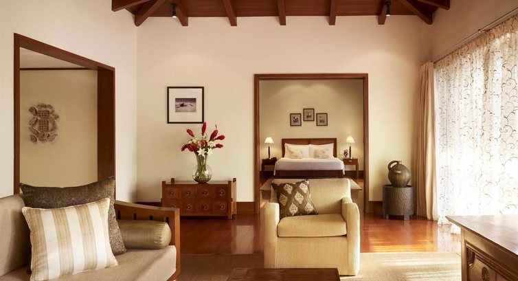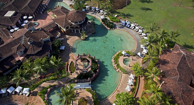 отдыхали в отеле в апреле , конец сезона.Ребята мы действительно отдыхали.Огромная ухоженная территория,с водопадами ,заливами, ненавязчивый запах лимонника ,спокойная индийская музыка.Это было здорово.Пляж с мелким бархатным песком.Самолет прибыл в 6.00 с аэропорта до отеля минут 20-30 на автобусе(трансфер,пегас туристик),полтора часа на рецепшене, и где-то в 9-30 нас заселили.Номера большие, ванны нет , есть большой бассейн.Большая лоджия с видом на водопад. Мы брали завтрак и не пожалели.Позавтракали и весь день свободны.И в город ездили и на экскурсии.Ужинали в основном у Френки. Короче -рекомендую всем кто хочет спокойно ОТДОХНУТЬ.Предупреждаю тусовки нет, кому нужна тусовка вам на северное ГОА. Аниматоров кстати тоже не видел, хотя могу ошибиться, мы не любители басейнов. На новый год поедем еще раз. Познакомились в отеле с семьёй, сейчас нет ,нет , да созваниваемся,дочь у них вообще никуда не хочет ехать кроме этого отеля.
