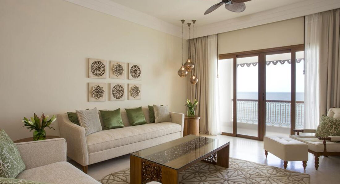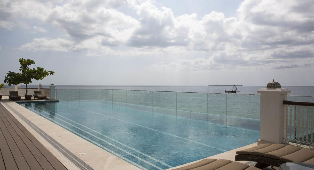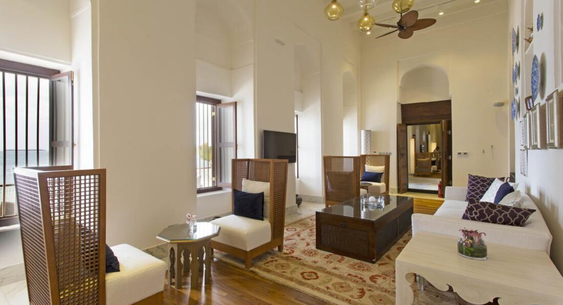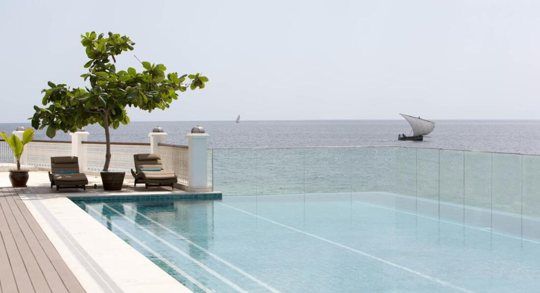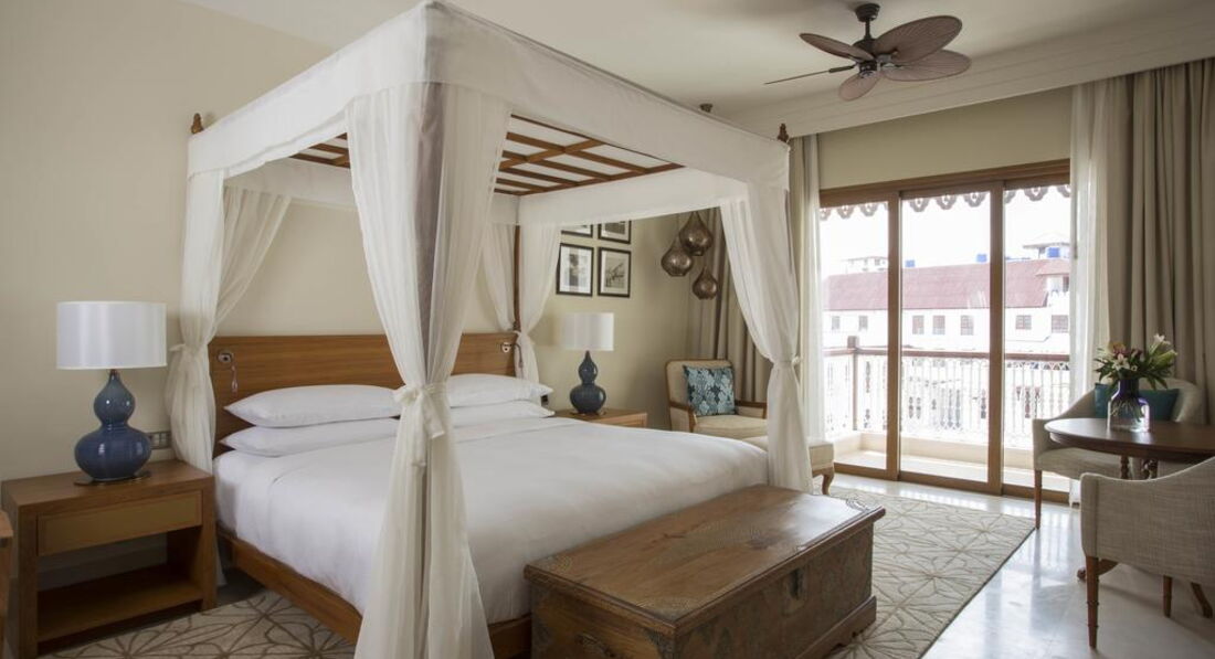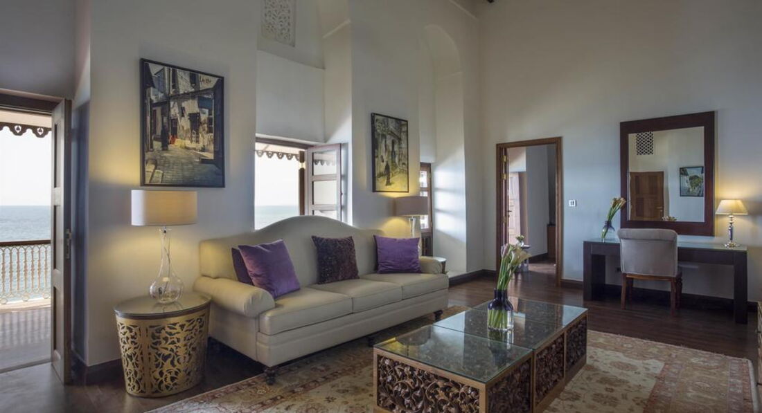Zamani Presidential Suite (Zamani Presidential Suite найбільший люкс - 450 квадратних метрів, що займає цілий поверх і з вікон відкривається панорамний вид на Кам'яне місто та Індійський океан. Номер з приватним садом на даху.)