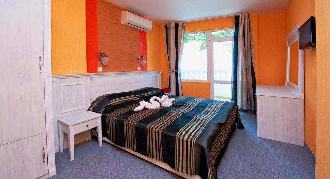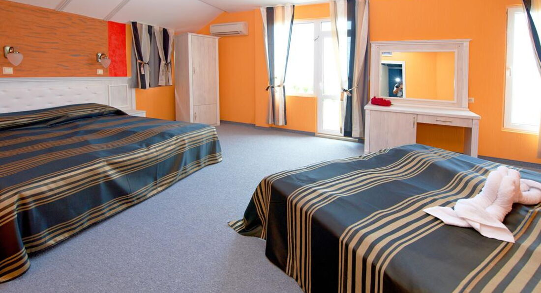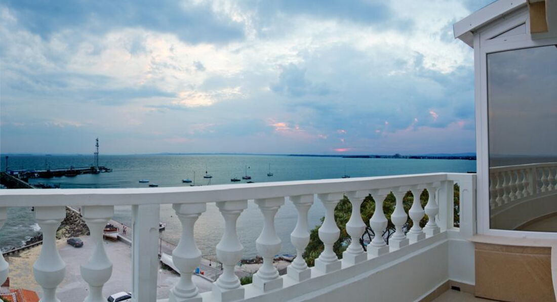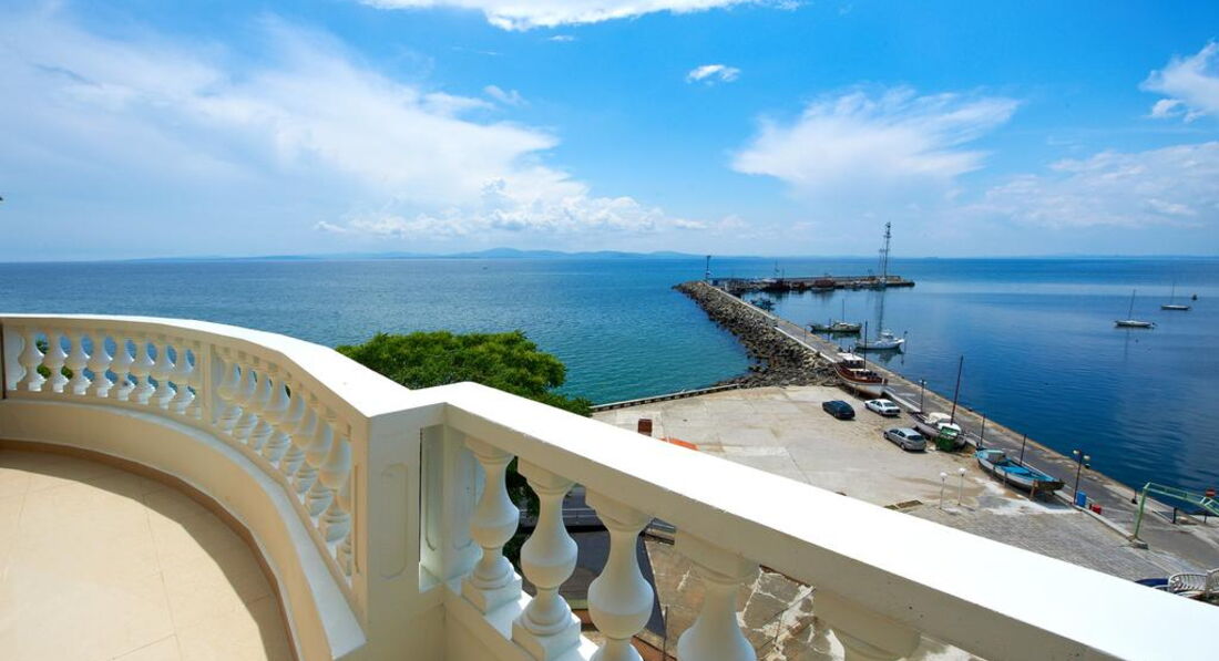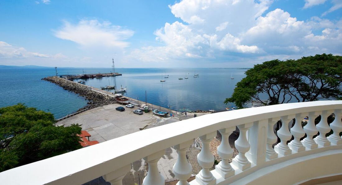 Отель семейный, 3* - действительно 3*, иногда четверки встречаются хуже. Отель расположен с старом городе Помория. Прямо на набережной, через небольшую дорогу. Минус в том, что большие автобусы-трансферы не могут к нему подъехать, т.к.припаркованные машины мешают. Так что если есть возможность, договариваться надо о мини-трансферах. Иначе придется идти пешком минут пять с чемоданами. Под окнами есть кафешки, в одном до двух ночи гуляют и поют местные песни. Если закрыть окна, то ничего не слышно. Рядом есть магазинчики. До центра 5 минут ползком, с детьми. Там парк с кучей разных машинок (5лев)-каталок-батутов (4лева)-4D-ватой-поп-корном. Короче, все для развлечений детей и подростков. У навс были дети - 5,7,12,15,18 лет - и всем было интересно. Пешеходная зона с кучей кафешек и магазинов. До такси идти те же 5 минут. Такси в Бургас - около 30лев. До автобусной станции - минут 10 пешком (цена билета в Бургас 3лева, в новый город Помория 1лев). Банкомат и банк находятся в 3 минут хотьбы. В пятницу банк закрывается в 16.30, в суб-воск не работает. Банкомат работает 24часа. Везде принимают только левы. Очень редко евро. В некоторых магазинах и ресторанах можно расплатиться картой. Поэтому наличные лучше всегда иметь при себе. И никогда не берите 100лев одной купюрой! Местные ее в глаза не видели, поэтому очень сложно будет ее поменять. Самый большой и единственный минус отеля - отсутствие пляжа. Напротив отеля - причал катеров, яхт, лодок и прогулочных кораблей. Вид - шикарный, но...пляжа нет. Кто-то умудряется лежать на большой каменной плите и загорать. Там есть ступеньки в воду. Если идти влево от отеля, то можно пристроиться на небольшой полосочке пляжа Отеля Поморие. Но и он не впечатляет - галька, куча людей друг у друга на головах. Одним словом, мы ходили еще дальше, минут 10-15 налево от нашего отеля, на городской пляж. Песок, зонты(6лев), спасатели (что актуально, когда красный флаг и волны выше человеческого роста). Также куча кафешек, блины-мороженое-кукуруза. Иногда там к берегу прибиваются водоросли (надо просто перейти через пирс). Есть пляжный волейбол. Еще мы ездили на другие стороны Помория - везде разные пляжи, цвет песка, волны где-то есть, где-то всегда тихо.Насчет самого отеля - 5 этажей. Лифт до 4-го. Номера - один люкс (в нем жила подруга с детьми) и много других разномастных номеров. Из каждого номера - вид на море. А он просто незабываемый! В номере кондиционер (не выключается, когда уходишь), телевизор, шкаф (небольшой), кровати удобные, тумбочки, большое зеркало, стол. В санузле - нет поддона у душа, вода сливается в слив в середине помещения. Сначало это раздражало, потом привыкли. Фена нет. Дали только мыло и туалетную бумагу. Полотенца меняли по мере загрязнения, без проблем. Белье три раза за 11 дней. Сам номер нормальный, нам втроем было где развернуться. Балкон большой, сушка есть, столик, кресла и табуретка. Очень дружелюбный персонал - начиная с ресепшн и заканчивая уборщицами (чаевые 1-2 лева). Мы просыпались поздно, гуляли допоздна. Никогда не было никаких проблем. На завтраки почти не ходили - особо не вкусно - помидоры-огурцы,хлопья,молоко,колбаса 1вид, сыр 1вид, иногда яйца. Кофе-чай - пить невозможно. Мы все купили сами и ели в номере (маленький чайник привезли с собой, чашки купили, тарелки и ложки брали в ресторане). Насчет обеда и ужина - не знаю. Мы ели в кафешках - на трои