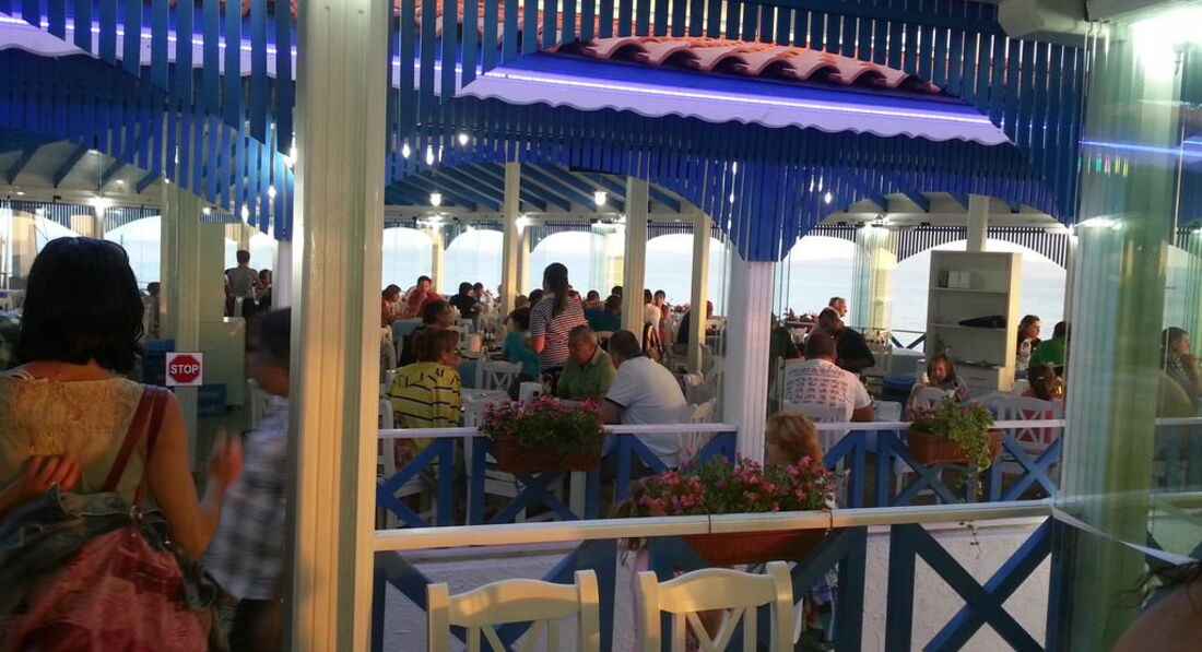 Питание. У нас был полупансион. Завтрак был в самом отеле-шведский стол. Все очень скромно. Пишу скромно, потому что видя реакцию наших туристов, которые только приехали и пришли на завтрак, их выражение было-удивление-это мягко сказано. Яйцо, или омлет, вермишель отварная, огурцы свежие, помидоры, маслины, брынза, сыр полутвердый, колбаса или ветчина-не знаю, что это было, не пробовала. Сухие завтраки, молоко, чай, напиток фруктовый какой то, апельсины, арбуз. В индивид.упаковке-масло, паштет мясной, джем ягодный. Хлеб один вид на завтрак и ужин-белый. Можно сделать тосты. Кофе черный или с молоком из аппарата, наливает Зоя. Что самое интересное, с таких аппаратов в Турции и Египте кофе, хоть упейся!!! И много видов. Здесь только 2 вида и он стоит за стойкой бара, который пустой. Вся еда постоянно пополняется этой же Зоей. Она и на телефон успевает отвечать и кофе наливать и тарелку с огурцами нести. Для меня завтрак был нормальным, либо хлопья с молоком, либо тосты. Дочь мало, что там ела, но только потому что еще не проснулась, а не потому что есть было нечего. Ужин проходил в ресторане Парос, что напротив нашего отеля. Ужин был порционно, никакого шведского стола. Каждый день было что то новое, никогда не повторялось. И рыба, и курица, и мясо гриль, и люля. На гарнир картофель либо фри, был сотэ, тушеный с грибами. Подавался салат-был их местный шопский салат, огурцы и помидоры. Порции были большие. Хватало. Но ппоследние 2 дня нам показалось, что порции стали меньше, народ приехал. Ужины были вкусные .