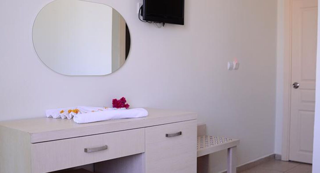Отель новый,чистый.Номера уютные,с небольшим балконом.телевизор показывает бесчётное кол-во каналов.есть много Российских(ищите после 700-х каналов).Хороший бесплатный VI-FI(пароль 03263443675).Легко общались по скайпу.В номере есть фен,мыльные принадлежности,холодильников нет. Безопасность 100%,деньги просто валялись в номере,никто не заходил,ключ брали с собой,можно было и на ресепшен оставлять.Уборка и смена белья по требованию.Рядом с отелем расположен дом мера города Кемера с охраной жандармерии,улица тихая,спокойная.