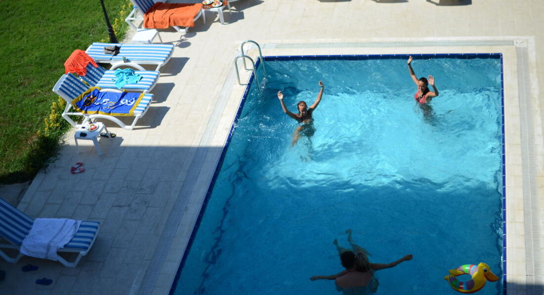 Территория отеля озеленена,хороший бассейн для взрослых глубиной около 1,5 м и рядышком детский бассейн.Вода чистая,хлоркой не пахнет.Персонал каждое утро засыпал специальный порошок для очистки воды,видели,как брали пробы воды(видимо,какой-то контроль типа нашего СЭС).Около бассейна есть душ,если лень подниматься в номер.Шезлонги,зонтики,столики,качели ,гамак-всё есть,достаточное количество,новое,чистое.