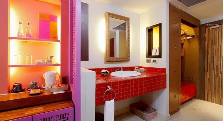Комнаты (у нас был номер superior) оформлены весьма оригинально - стена из комнаты в ванную - стеклянная, при необходимости можно закрыть ролл-шторой. в ванной: ванная, стоящая на камнях с водопадиком и отдельно мраморная душевая кабина на двоих человек с душем и душевым дождем. Напор отличный, перебоев с водой не было никогда.