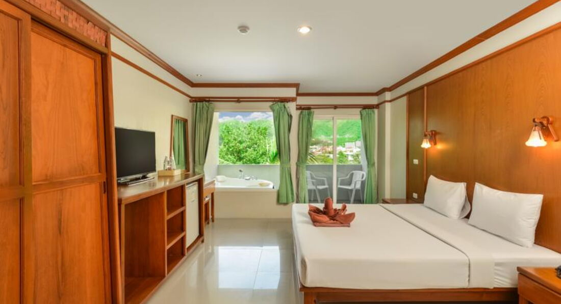 Были в этом отеле с 14.03.2012 по 25.03.2012, номер на шестом этаже с джакузи-жили именно в нем, поэтому рекомендую. Хороший отель, отличное расположение- до моря мин 5-7, до бангла роад мин 10, окна выходят на горы, очень красиво. В отеле тихо и спокойно, бассейн маленький, но нас он не интересовал. Из питания у нас были только завтраки- ничего изысканного, все обычно- яйца, тосты, бекон, картофель, овощи, немного фруктов.