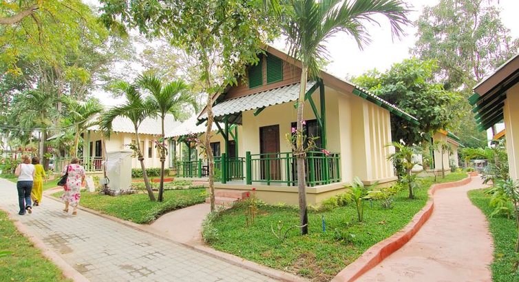 Отдыхали в этом отеле с супругом в октябре 2015 г. Дождь был раза три и мы были каждый раз ему рады, хоть какая-то прохлада. Быстро всё высыхало после. Отель удобен расположением. До пляжа минут 7 пешком. До тусовки на тук-туке 7-10 минут. Рядом фруктовый рынок, в пешей доступности. Чуть проехать и рыбный рынок, где приготовят Вам на месте вкусняшки за небольшую мзду! Мы покупали лобстера за 1600р. Ви-Фи был на ресепшн (слабенький), но мы покупали местную симку, потому им практически не пользовались. При заселении в номер в старом корпусе сразу попросили переселить в Делюкс на первом этаже, возле бассейна, за 50$. Номер отличный, правда кровати раздельные. Кондиционер работал исправно. В ванной всё чисто, унитаз не протекал, стандартные принадлежности каждодневно дополняли. Брали путевку без питания, но с кем знакомились, говорили, что ресторан сносный. Убирали номер каждый день. Чаевым была рада, убирала лучше. Ничего не крали. Бассейн глубокий, улетный) Вечером сидели за столиком у бассейна, напротив своего номера. Так уютно, душевно. Никто не возмущался. Видели крысу, но она там завсегдатая, почти ручная. Ей на вас, как и вам должно быть на нее)) Ведь вы приехали отдыхать в Азию. Тараканов вообще не видели в номере. На территории отеля пробегали. В один из дней рухнуло дерево, на котором бегали клевые белки! Вокруг цветы,аромат обалденный. Зелени на территории много, особенно где бунгало. Но туда заселятся не рискнули, слишком уж хлипкие сарайчики, и бассейн рядом меньше. В целом, отелем довольны! Советуем)