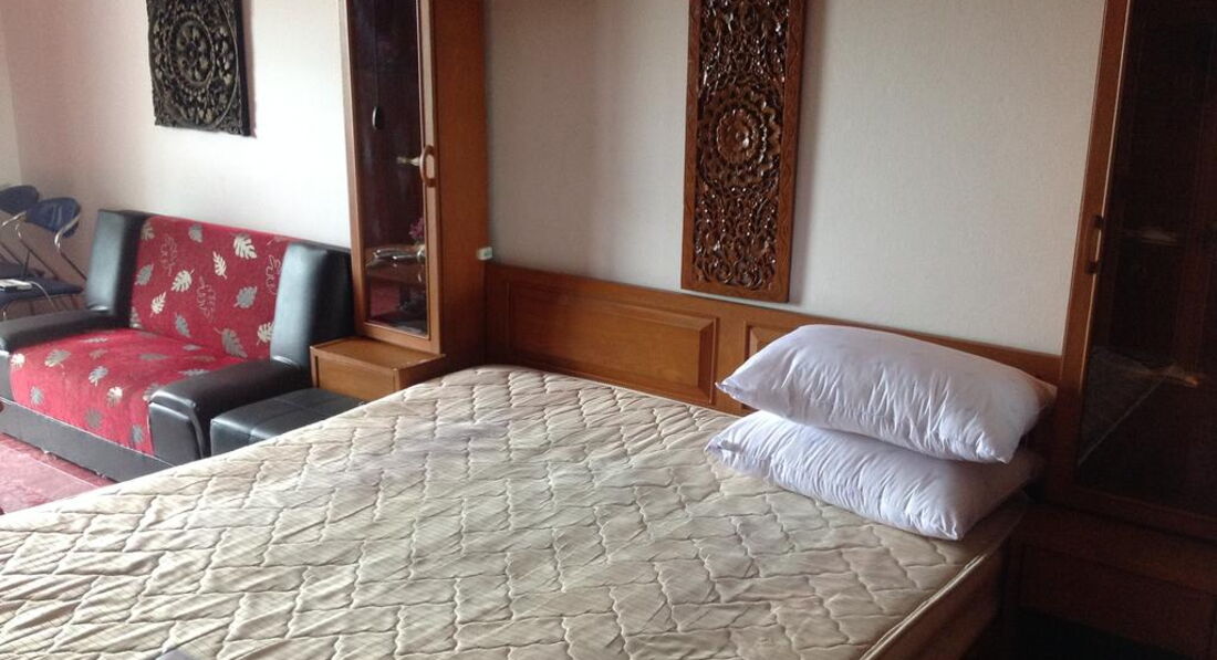 Искала недорогой отель на Пратумнаке, рядом со своими друзьями. Для тех, кто в Паттайе первый раз, конечно из отеля будет сложновато выезжать, он не в центре и не рядом с пляжем, за то стоимость очень дешевая, если учитывать, что этаж высокий с видом на море ( номер над входом в отель) почти все номера стандарт, чистейший шикарный бассейн, есть ресторан, где хорошо и дешево кормят, магазин, массаж, тур агентсво с экскурсиями. Номера огромные! С ванной, с большим балконом, с кухней, со шкафами, мягкими креслами и плетеной мебелью. Конечно при заезде номер был грязный с множеством черных волос, но прибравшись самой, что в общем-то нормально в Паттайе, все заблагоухало! И друзья, приглашенные в гости были очарованы отелем и номеров, даже предположив, что это 4*. Будьте ВНИМАТЕЛЬНЫ! на рецепшене берут 100$ в качестве залога! Впринцепи, сообщение хорошее: мотобайк такси часто ездит мимо этого места, центр, пляж и причал совсем рядом, пешком конечно не дойдешь по жаре, но ехать всего ничего.