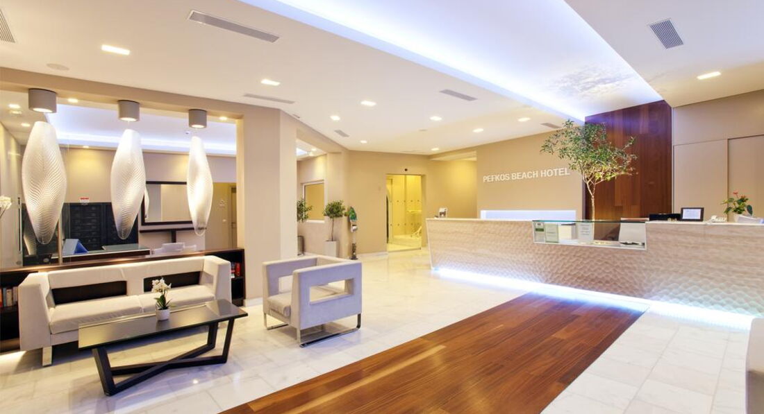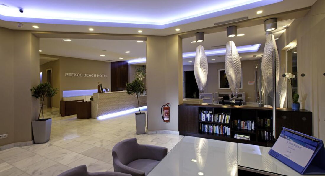 До пляжу можна дійти лише за 8 хвилин. Комплекс Pefkos Beach розташований у селі Пефки на острові Родос, за 50 км від міста Родос і за 32 км від села Фаліракі. Готель Pefkos Beach розташований на сосновому пагорбі, в південно-східній частині Родосу, і представляє захоплюючий вид на затоку Пефкос, один з найкращих пляжів на острові Родос. Готель відмінно підходить як для молодіжного, так і сімейного відпочинку.