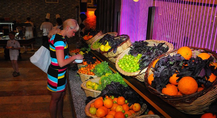 Включає: сніданок (07:00-10:00), пізній сніданок (10:00-11:00), обід (12:30-14:00), вечеря (19:00-21:00) - шведська стіл; закуски протягом дня у барах готелю, алкогольні та безалкогольні напої місцевого виробництва, а також певний вибір імпортних алкогольних напоїв. Свіжі соки, морозиво - платно. Молодятам - кошик фруктів, вино, сніданок у номер; постійним гостям – кошик фруктів, вино; іменинникам – кошик фруктів.