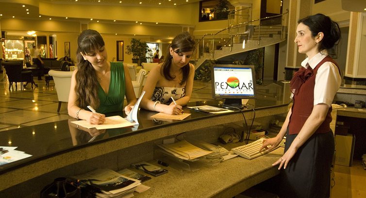 Pemar Beach Resort. На ресепшене нам быстро, в течении 20 минут, выдали ключ от номера. И мы пошли спать, так как в отель мы приехали около 4 утра.