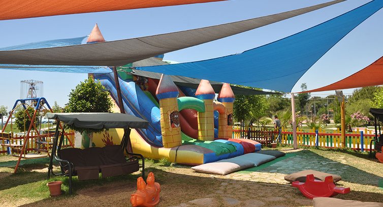 Добирались из аэропорта на микроавтобусе с кондиционером почти два часа, но они практически не ощущаются, т.к. дороги ровные, виды красивые, ехать было в удовольствие. Приехав в отель в 8.00 утра, нас попросили подождать, т.к. номер еще был не готов. и мы бросив чемоданы на рецепшене, поднялись в столовую, где перекусили, и отдохнули на диванах, в 11.00 нас заселили. Номера нормальные, староватые, но пойдет, кондер работал, телек тоже, убирали каждый день, оставляли по доллару горничной, но лебедей так ни разу и не увидели. Отличный отель, огромная территория с парком, аттракционами, батутами и прочим. Хороший пляж, море теплое. . Для детей классный детский клуб, в котором можно оставить ребенка на пару часов и там им занимаются, то у них карате, то рисование, то еще что-то, в общем интересно. Все хорошо, кроме еды, за редким исключением. на завтрак еще можно было что-то найти, то омлетик, то блинчики, либо хлопья с молоком. На обед и ужин еда не вкусная, может мы просто не привычные, но реально все 8 дней из съедобного были картошка фри, макароны, пицца и фрукты. У всего остального вкус настолько забивают приправами, что если закрыть глаза, то можно не сразу понять что жуешь. Овощей много, но все какие-то уставшие уже, помидоры стекшие, зелень подвявшая. Суп-разведенные кубики магги, пюре тоже самое, колбасы и сосиски неестественного розового цвета, видимо из сои. Из напитков пепси, кола, спрайт, разведенный юпи (типо сок). На территории отеля можно платно приобрести свежевыжатый апельсиновый сок (3 дол), огромный стакан. Мы ходили в местный магазинчик, через дорогу пройдя все рынки, там можно было приобрести неплохие продукты и напитки, гораздо дешевле чем в отеле. Также если немного проехаться на автобусе, можно попасть на алара гранд базар, где за сущие копейки можно приобрести халатики, маечки, сарафанчики и сувениры, главное торговаться. В целом понравилось, но еда просто писец.
