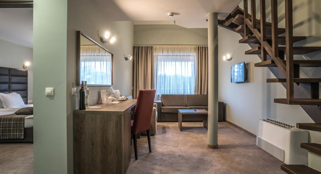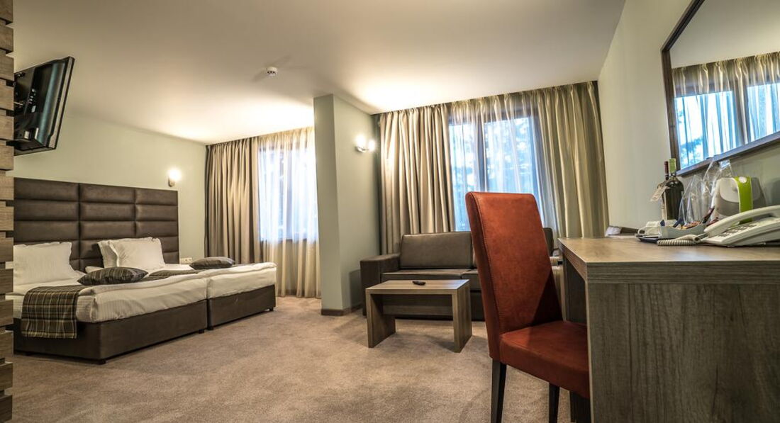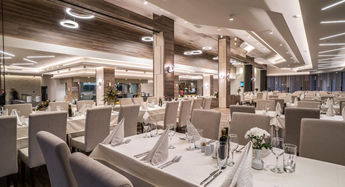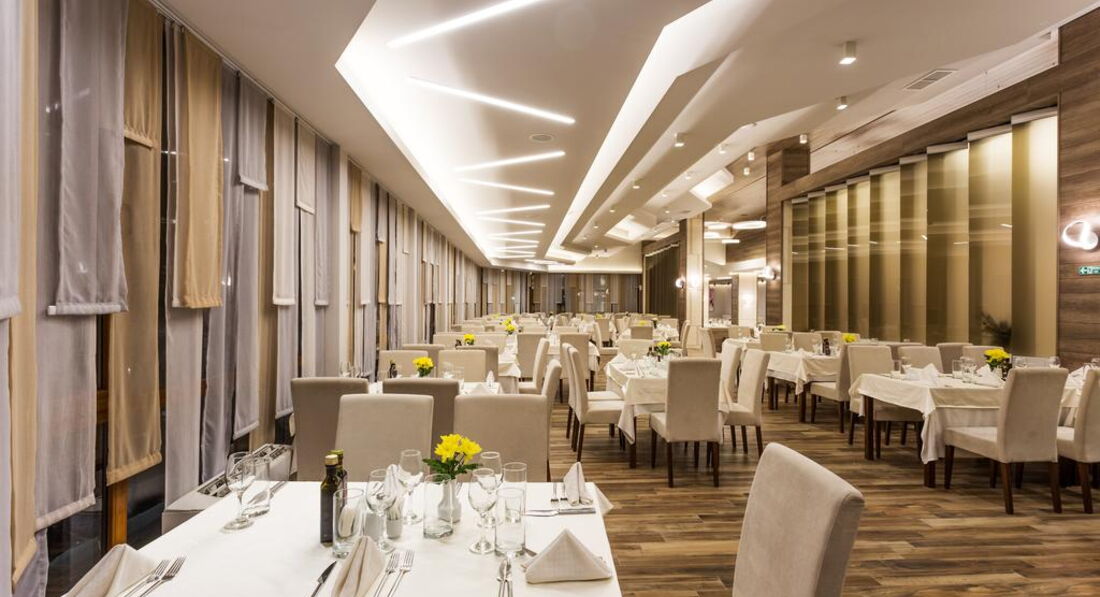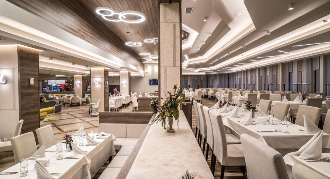 • ресторан готелю, оформлений у типовому родопільському стилі, розрахований на 180 осіб, пропонує своїм відвідувачам різноманітні страви національної та європейської кухонь.
