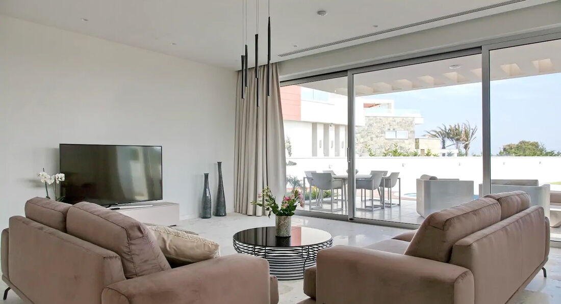 Є моменти, коли ви просто не хочете погоджуватись на щось менше, ніж розкішна вілла з 5 спальнями на березі моря. Саме тоді ви обираєте Perenna Luxury Home. Розташований приблизно за 50 км від аеропорту Ларнакі, за 2 км від літнього курорту Айя-Напа і за 100 метрів від найближчого піщаного пляжу з усіма зручностями, Перенна може розмістити до 10 гостей, пропонуючи їм всі зручності розкішного будинку для відпустки площею 470 кв.