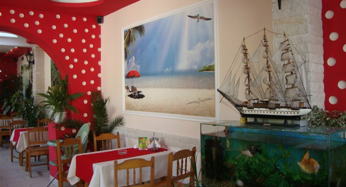 Выбрали данный отель по совету менеджера турфирмы и остались довольны. На следующий год опять приезжали сюда же. Удачное расположение: близко от моря, но чуть удалено от центра города, где по вечерам очень многолюдно и шумно . Нам предоставили 2-комнатный номер, что было очень удобно для нашей семьи из 3-х человек. Брали только завтраки, они всегда были горячие, вкусные, но достаточно однообразные. В городе множество кафе и ресторанов,тч голодными не были, цены вполне доступные. Отель удачно расположен на главной улице города, на которой днем идет активная торговля , а вечером начинают работу вечерные программы в ресторанах. Сразу за отелем начинается пологий спуск к морю, что тоже удобно ( в центре спуск к морю по лестнице). Пляж со стороны нашего отеля был менее многолюден, чем пляж у центра. Для детей много разных удовольствий и по дороге к пляжу, и на самом пляже. После Питера мы ощущали себя в райском уголке...))) от города, отеля, доброжелательных и гостеприимных хозяев , моря, солнца, активного отдыха остались самые лучшие воспоминания..))