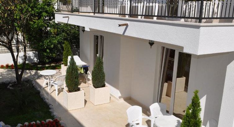 • B APP площа – 40 м2. Спальня з французьким ліжком, вітальня з розкладним диваном (2 особи), кухня, обідня зона, ванна кімната, тераса з видом на море. Кондиціонер, кабельне телебачення, холодильник, сейф, фен