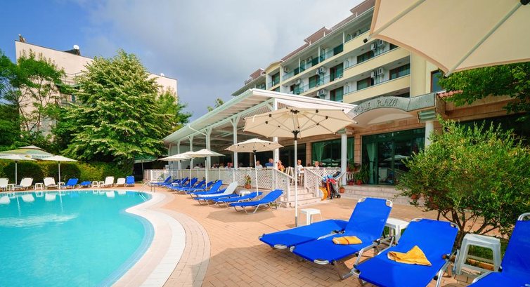 Готель Perla Plaza розташований всього за 40 метрів від Чорного моря, за 100 метрів від готелю знаходиться центр міста Приморсько. Він належить до комплексу Perla Beach. Навколо готелю є безліч кафе, бістро, дискотек та ресторанів. Готель підходить для сімейного відпочинку.